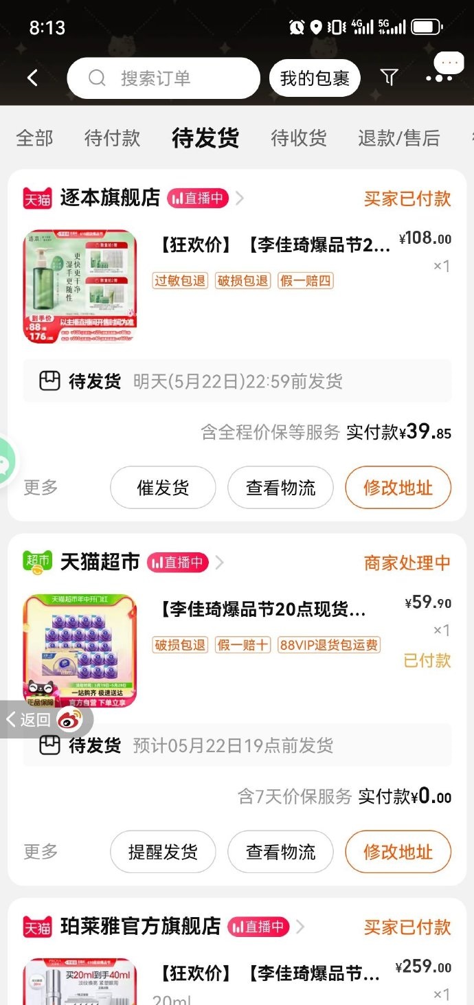 加上前几天免单的七十多。买了几样划算的好东西。比起来那种一堆人喊来喊去,抽手机也抽不到的,这些只要蹲着就能抢好多红包,大家一起开开心心买东西,真好。永远喜欢李俊朗,永远爱淘宝!