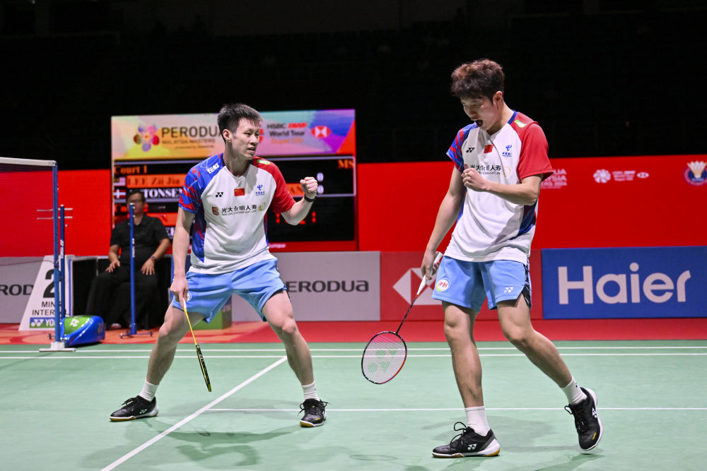 男双方面,中国队组合何济霆/任翔宇2:0战胜马来西亚组合万炜聪/郑凯文。