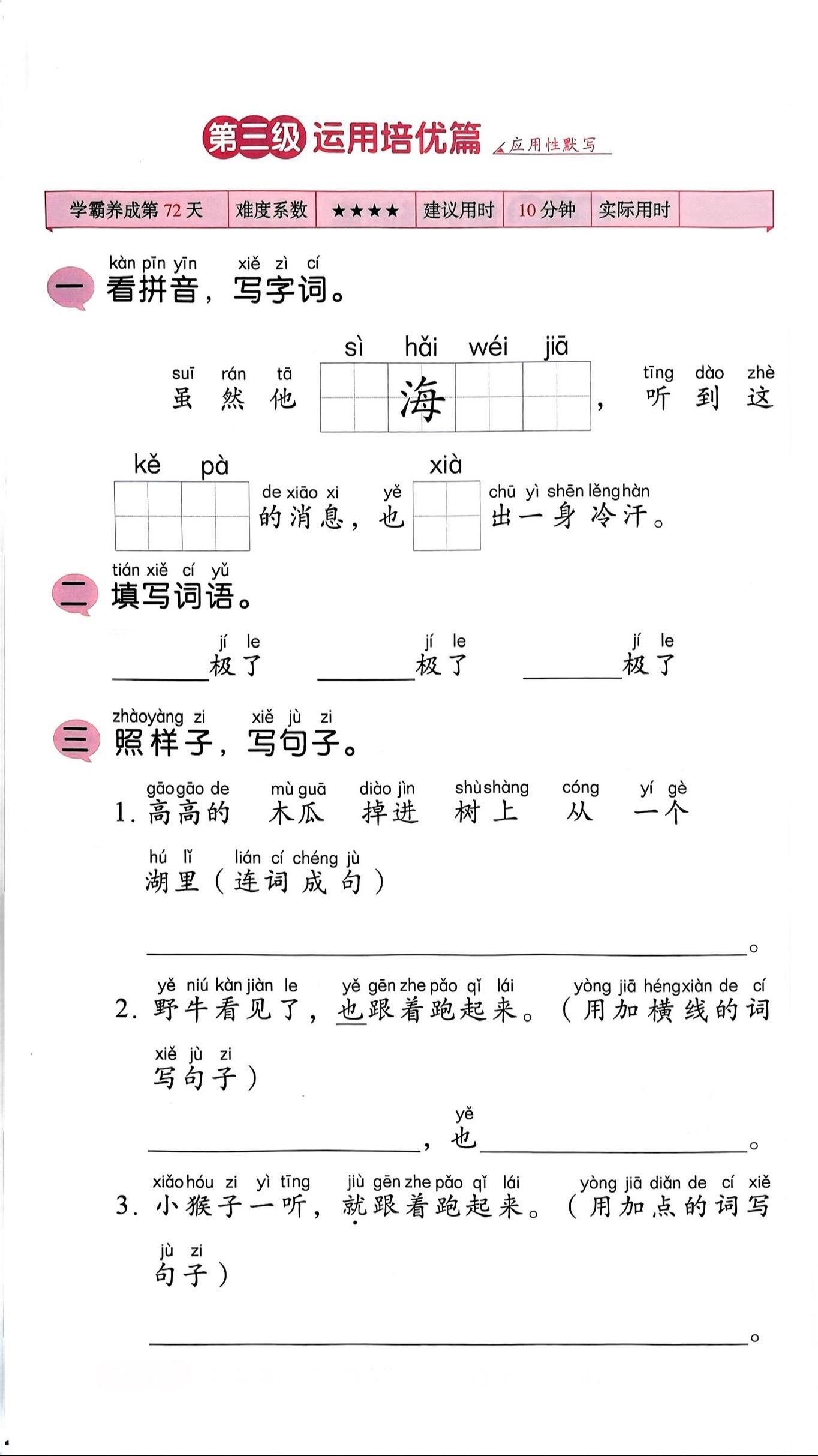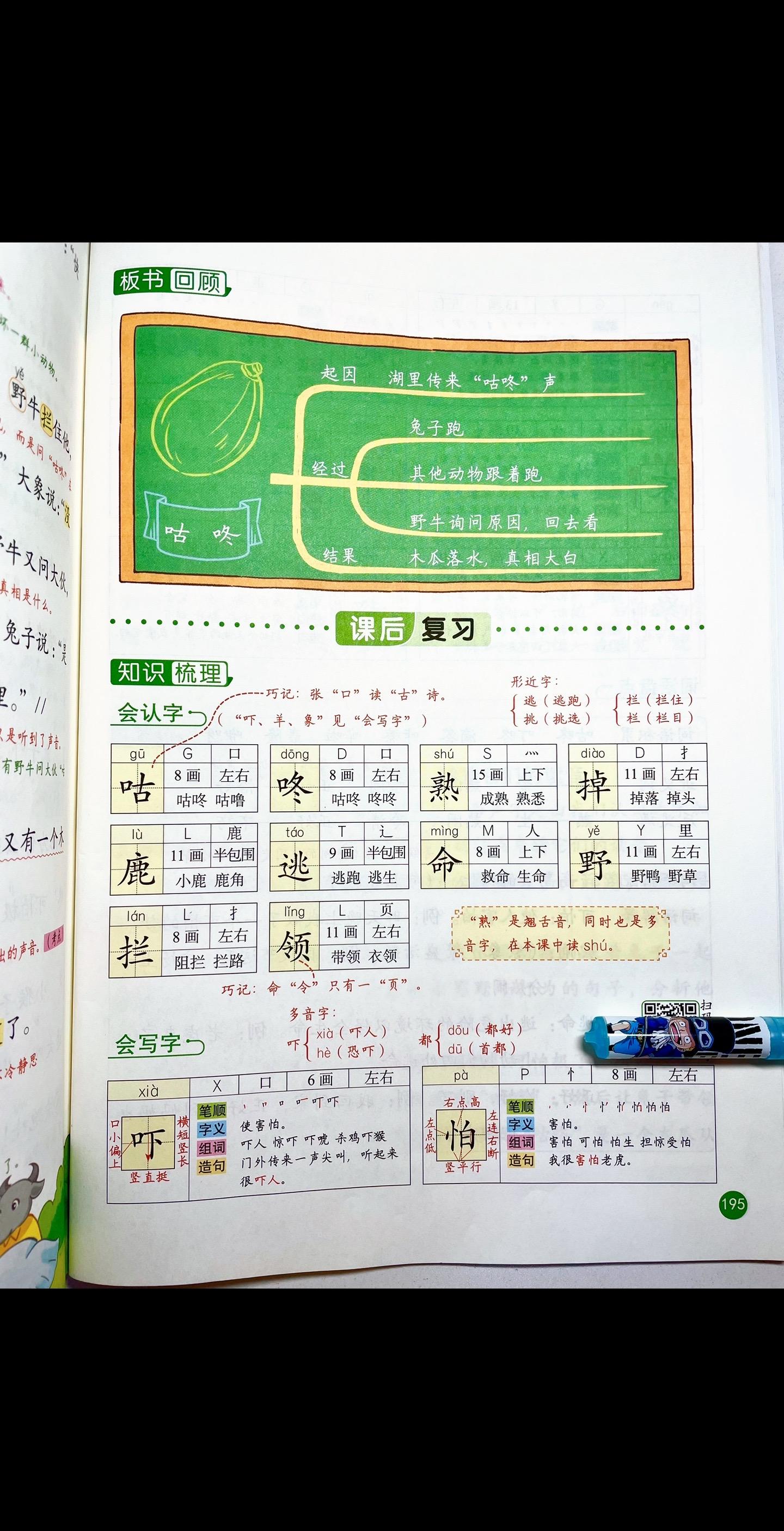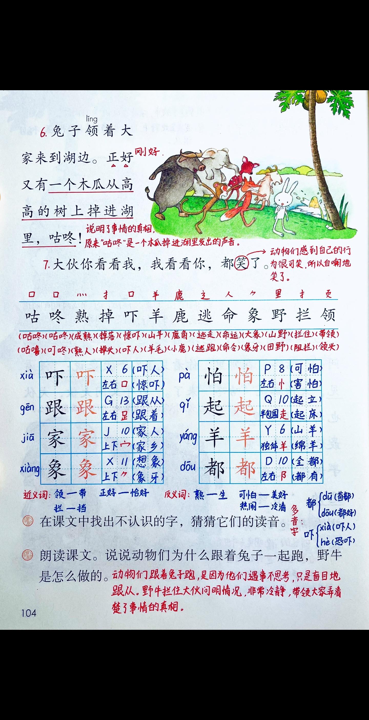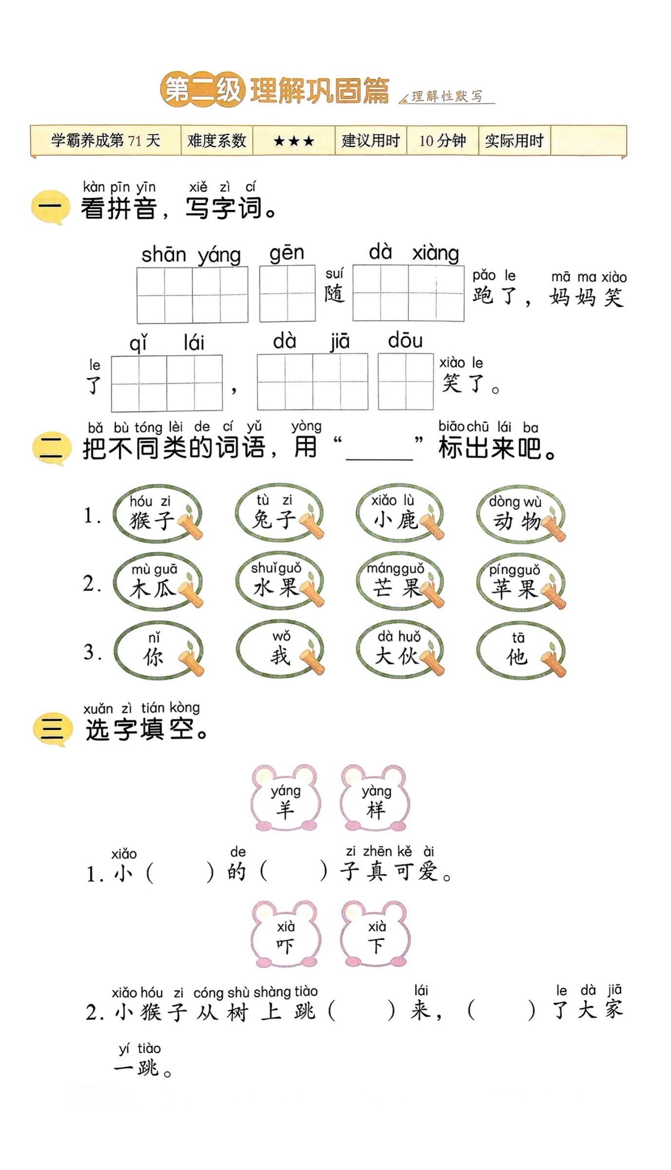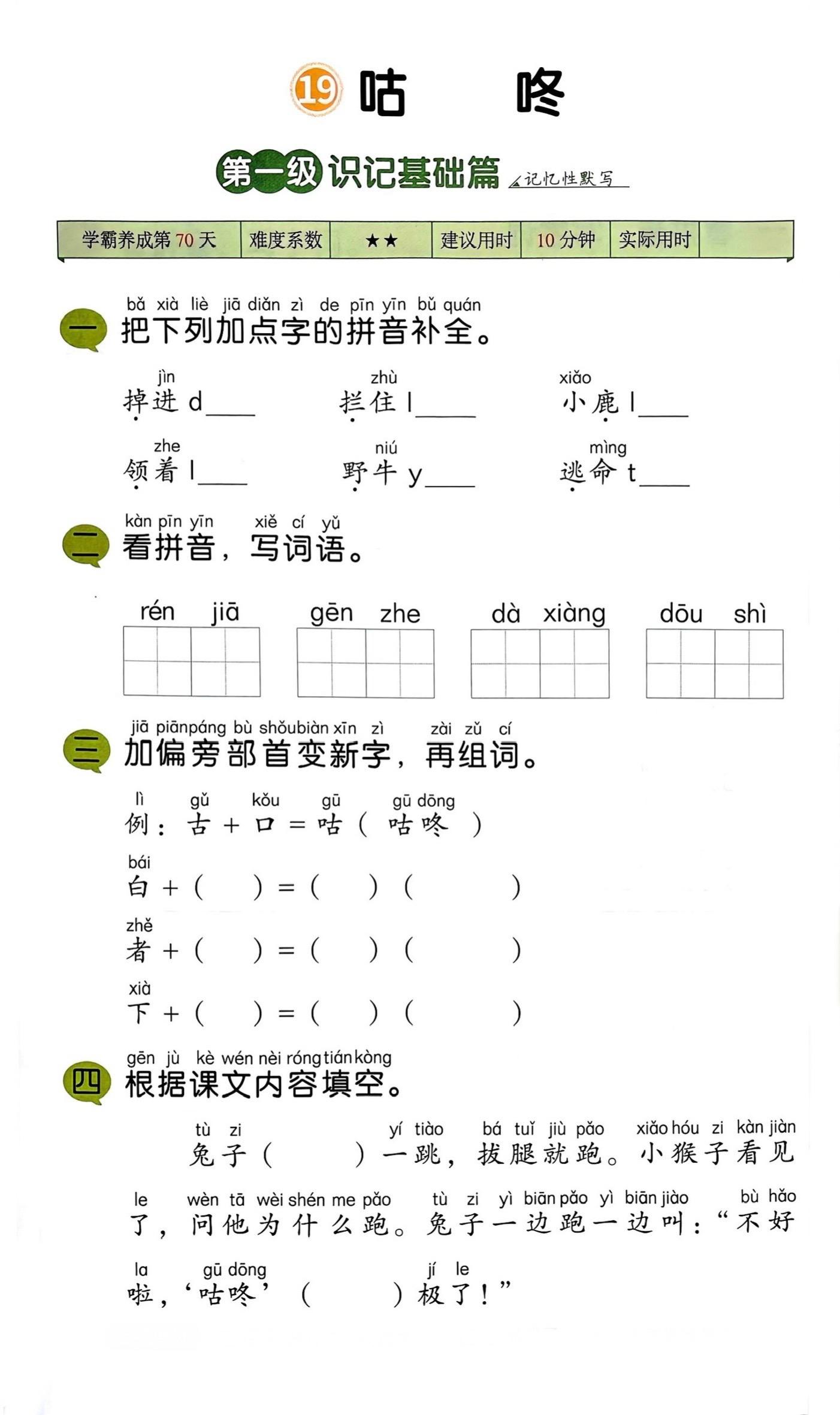 一年级语文下册《咕咚》笔记+练习题+一二类字整理。