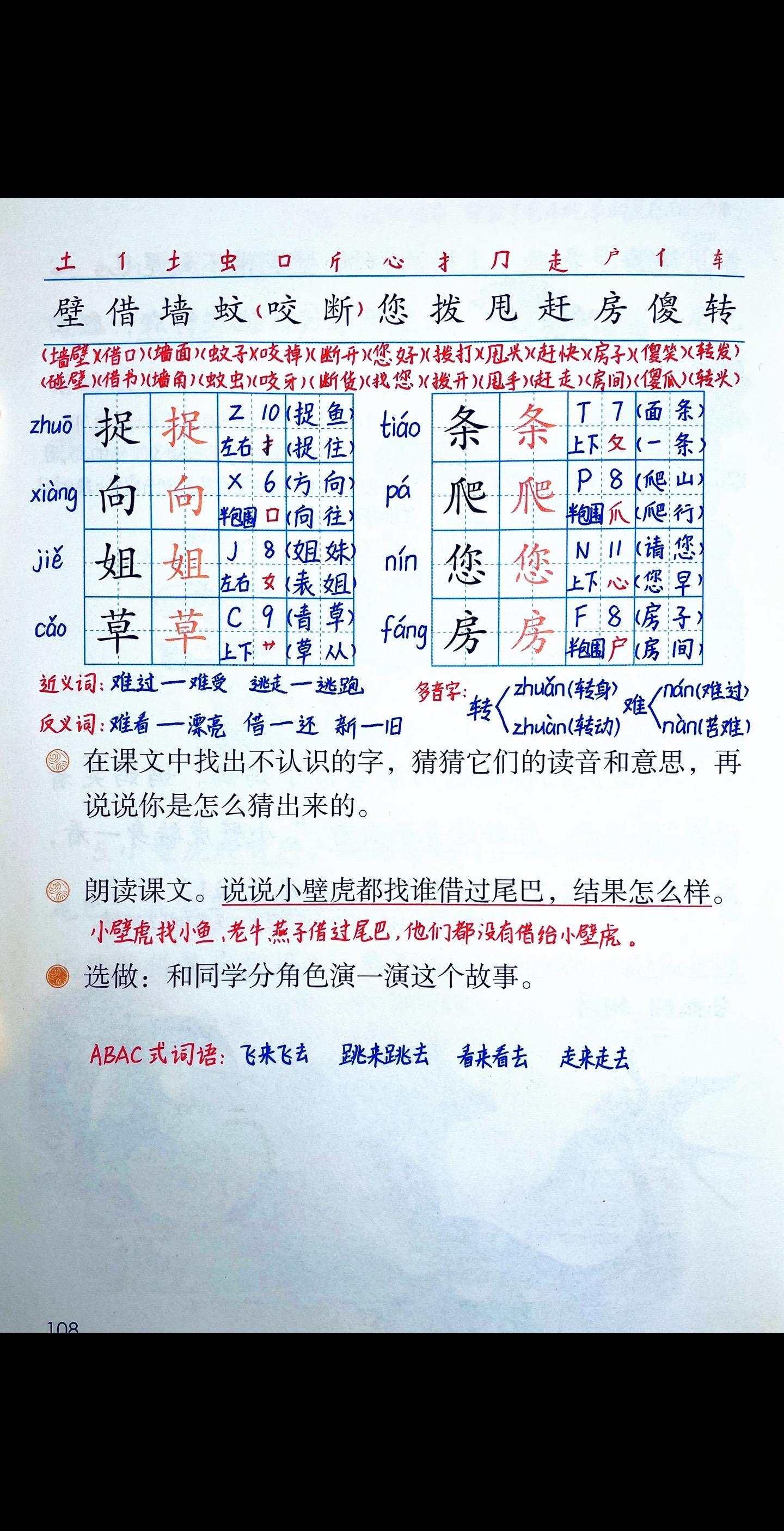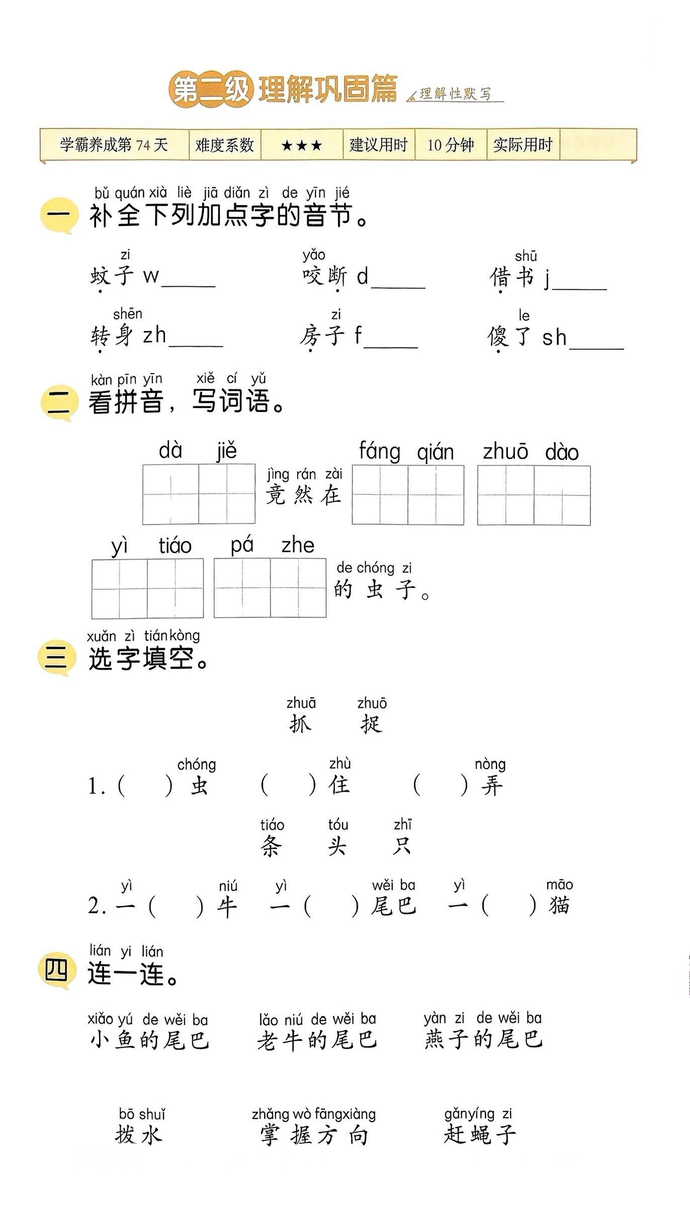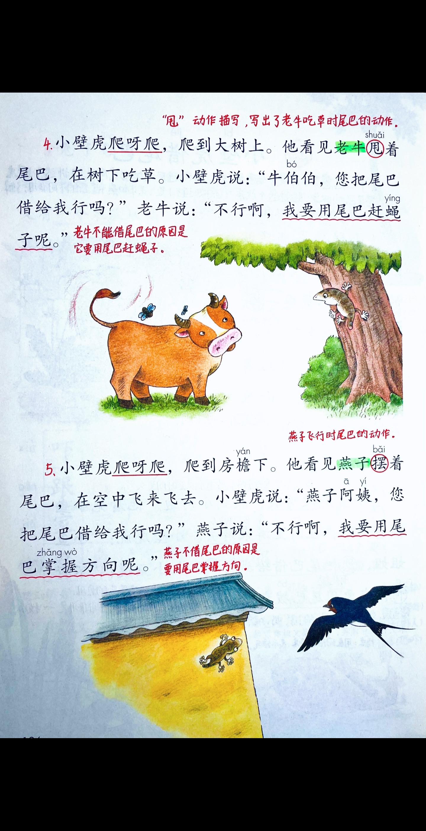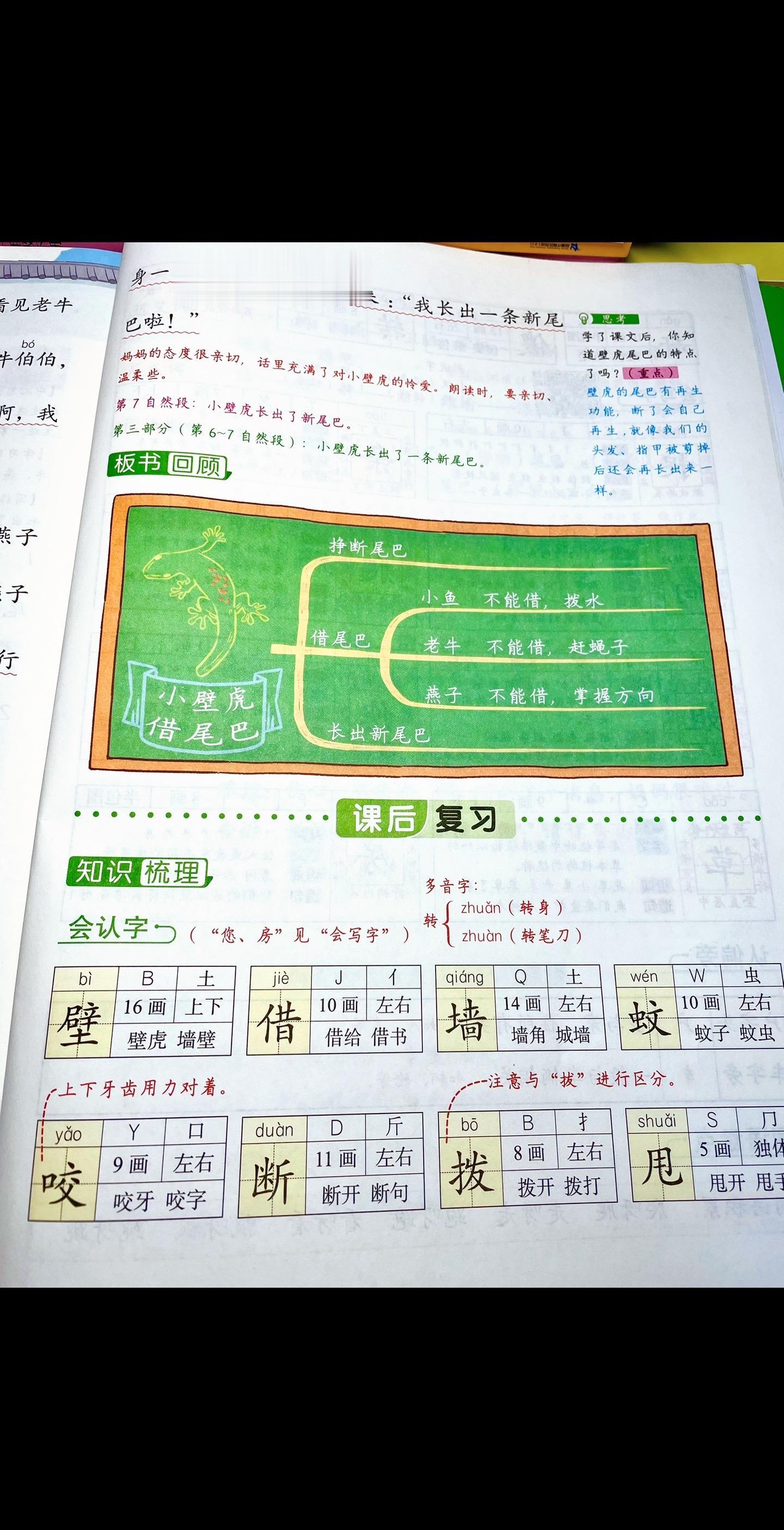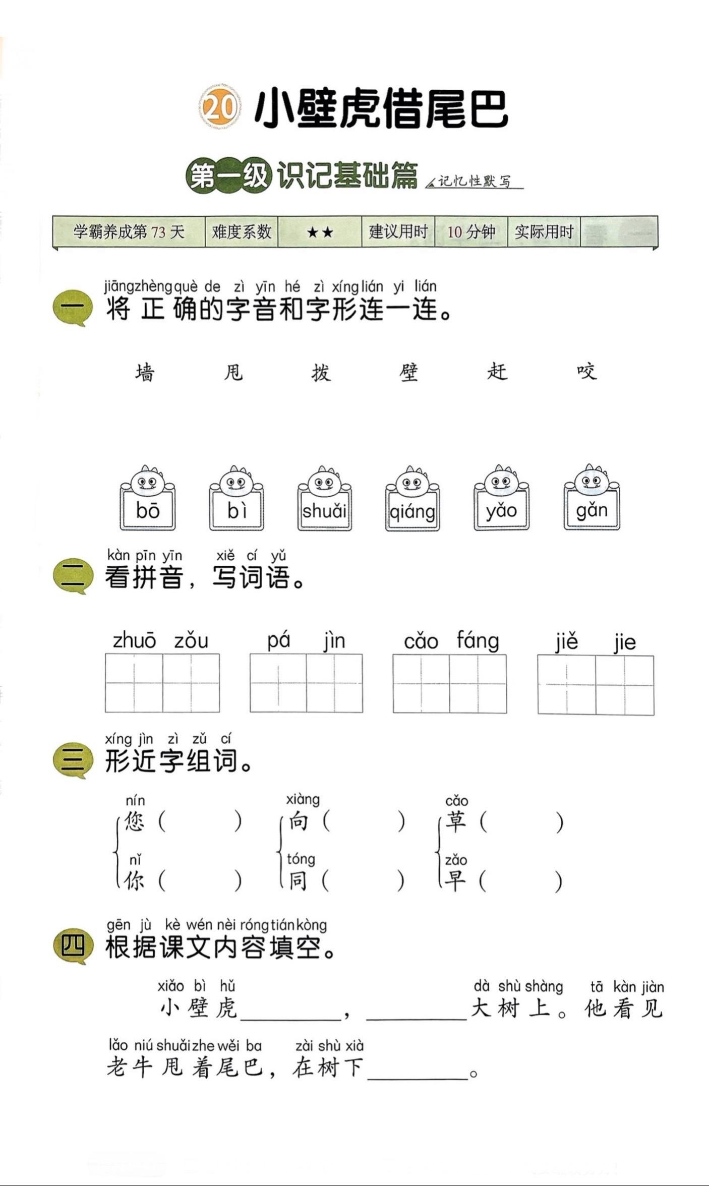 一年级语文下册《小壁虎借尾巴》笔记+练习题+一二类字整理。
