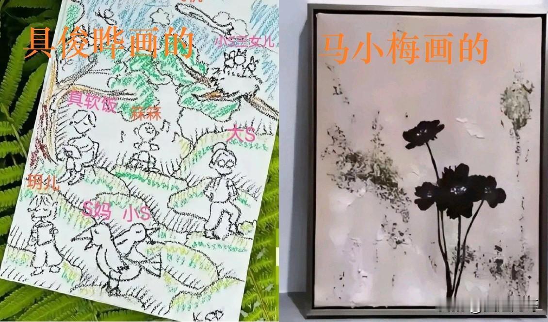 别说,还真别说,汪小菲再婚,不管自身还是现任老婆,都比大S那对强太多了,不信你看: 1.大S再婚,具俊晔抠抠搜搜,送的是纹身戒指;汪小菲大大方方,一送就是鸽子蛋钻戒。 2.汪小菲的座驾是豪车,具俊晔只有自行车。 3.马小梅的画作VS被具俊晔的画作,轻轻松松就将对方KO了。