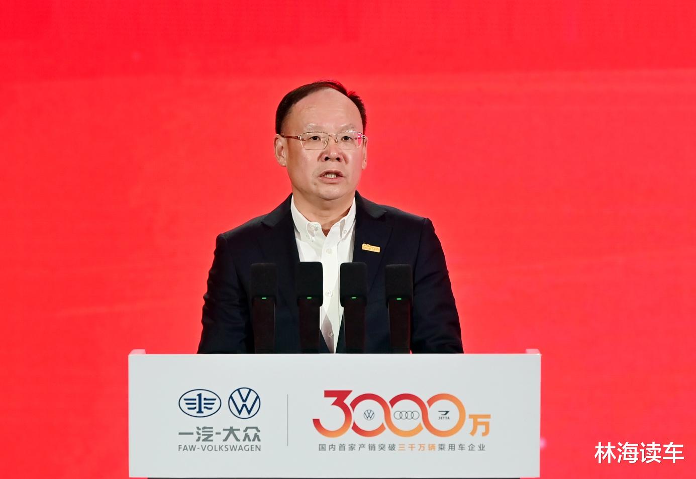 林敢为在发言中深情回顾了企业从合资筹建到稳健发展的奋斗历程,回忆了企业从无到有、由小到大的艰辛与荣耀,为见证企业跨越3000万辆的重要时刻感到欣慰和自豪,希望一汽-大众在新的起点实现新的突破、创造新的辉煌。