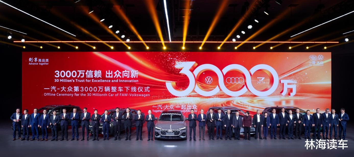 3000万辆,承载了3000万个梦想,凝聚着3000万份信任!在一汽-大众历任总经理的共同见证下,政府及股东领导对一汽-大众产销突破3000万辆表示热烈祝贺,并对公司成立34年来取得的辉煌成就给予充分肯定。