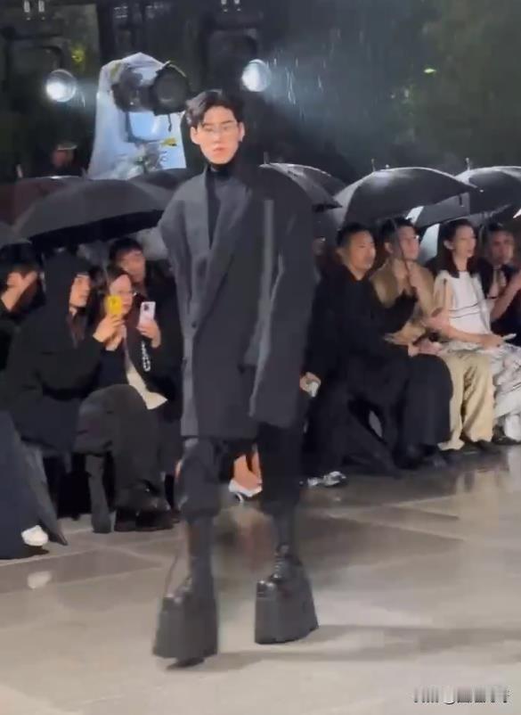 这也是潮流吗?巴黎世家雨中走秀酷不酷我不知道,就好奇,模特这一身,谁会买单。