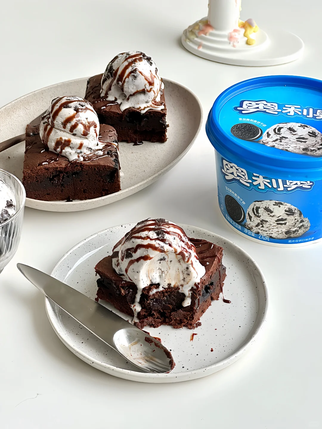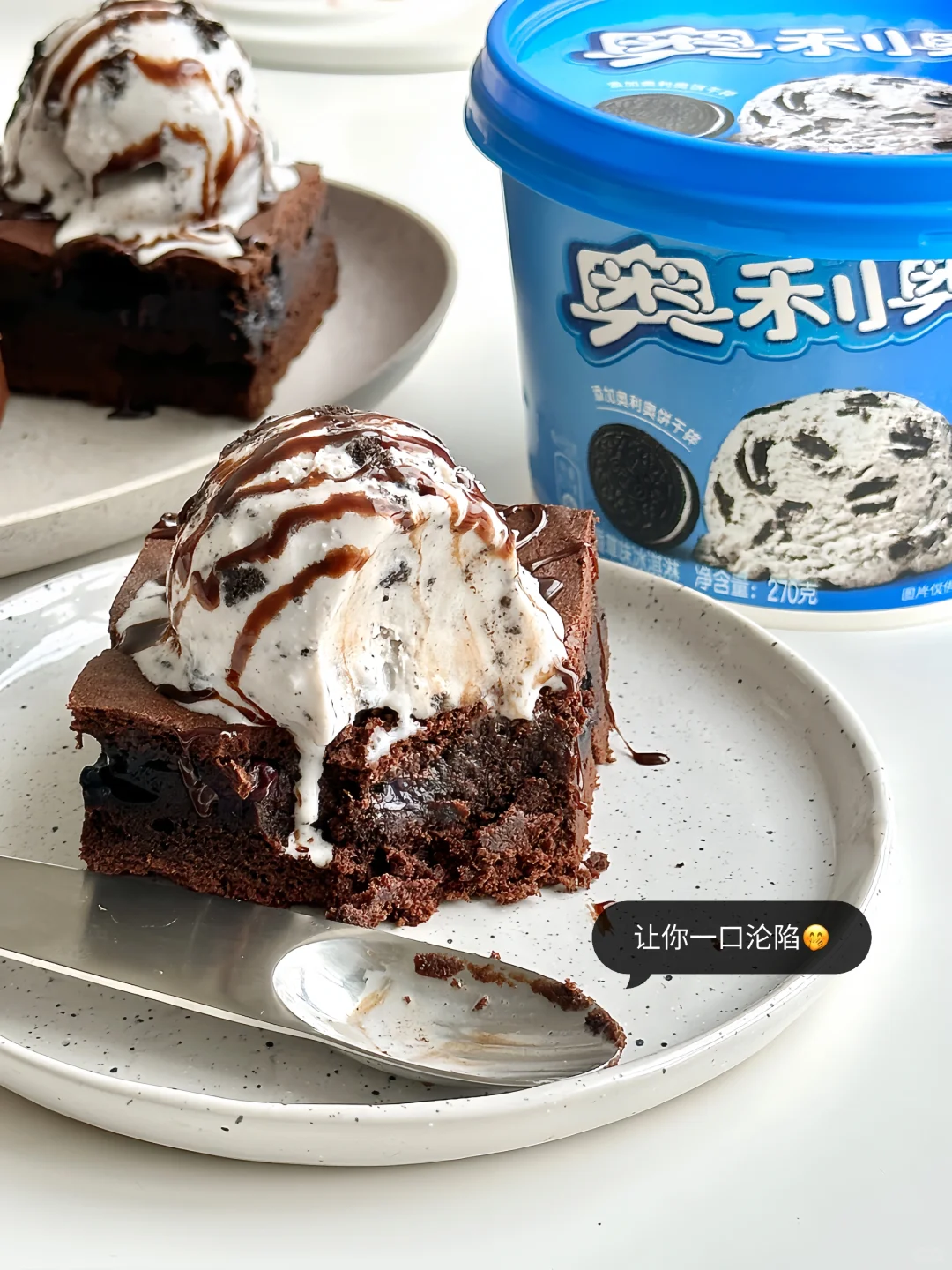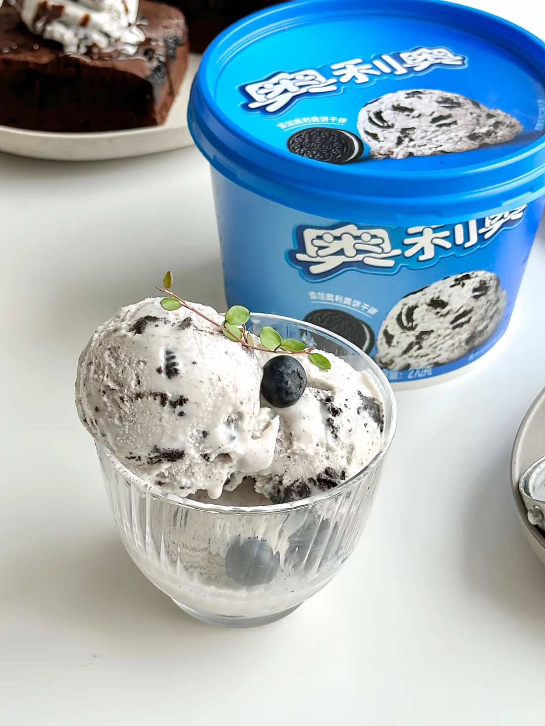 冰淇淋用的是家里囤的奥利奥冰淇淋桶,它和甜品真滴很搭,口感绵密奶香浓郁,每一口都能吃到奥利奥饼干碎😋而且超级大一桶,能给家人和朋友一起分享
