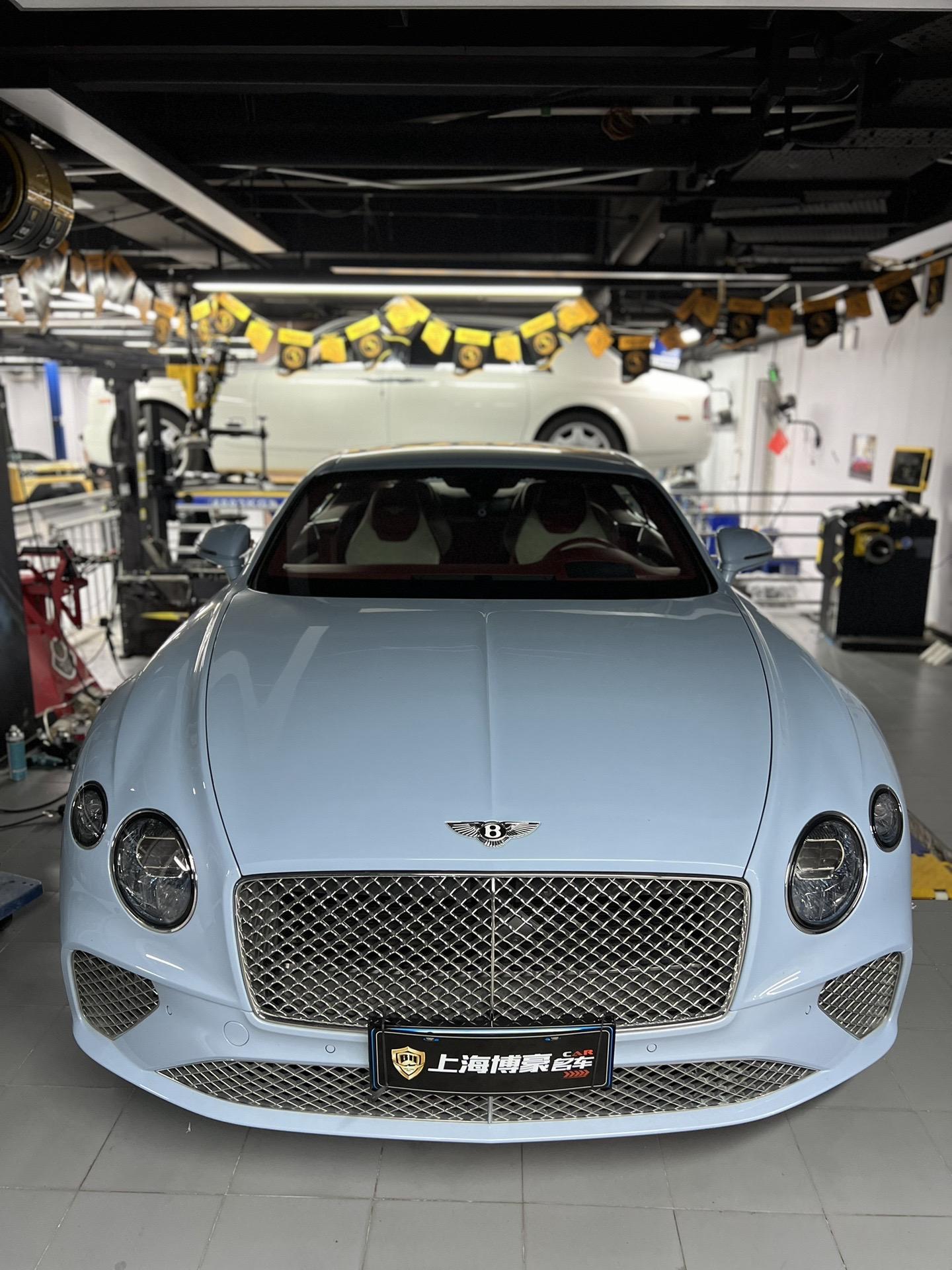最美宾利欧陆GT.最新拿下宾利欧陆 GT 炫蓝外观(baby blue)白红双拼内饰 穆勒包 头枕刺绣 等等 23年上牌准新车一台 可遇不可求