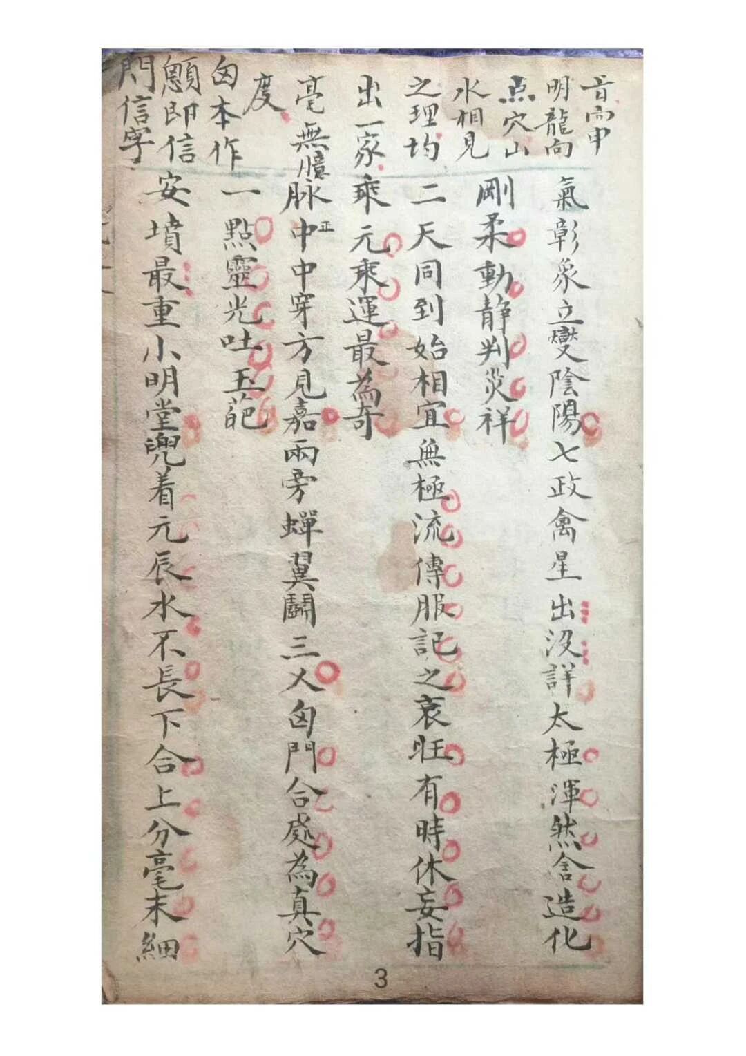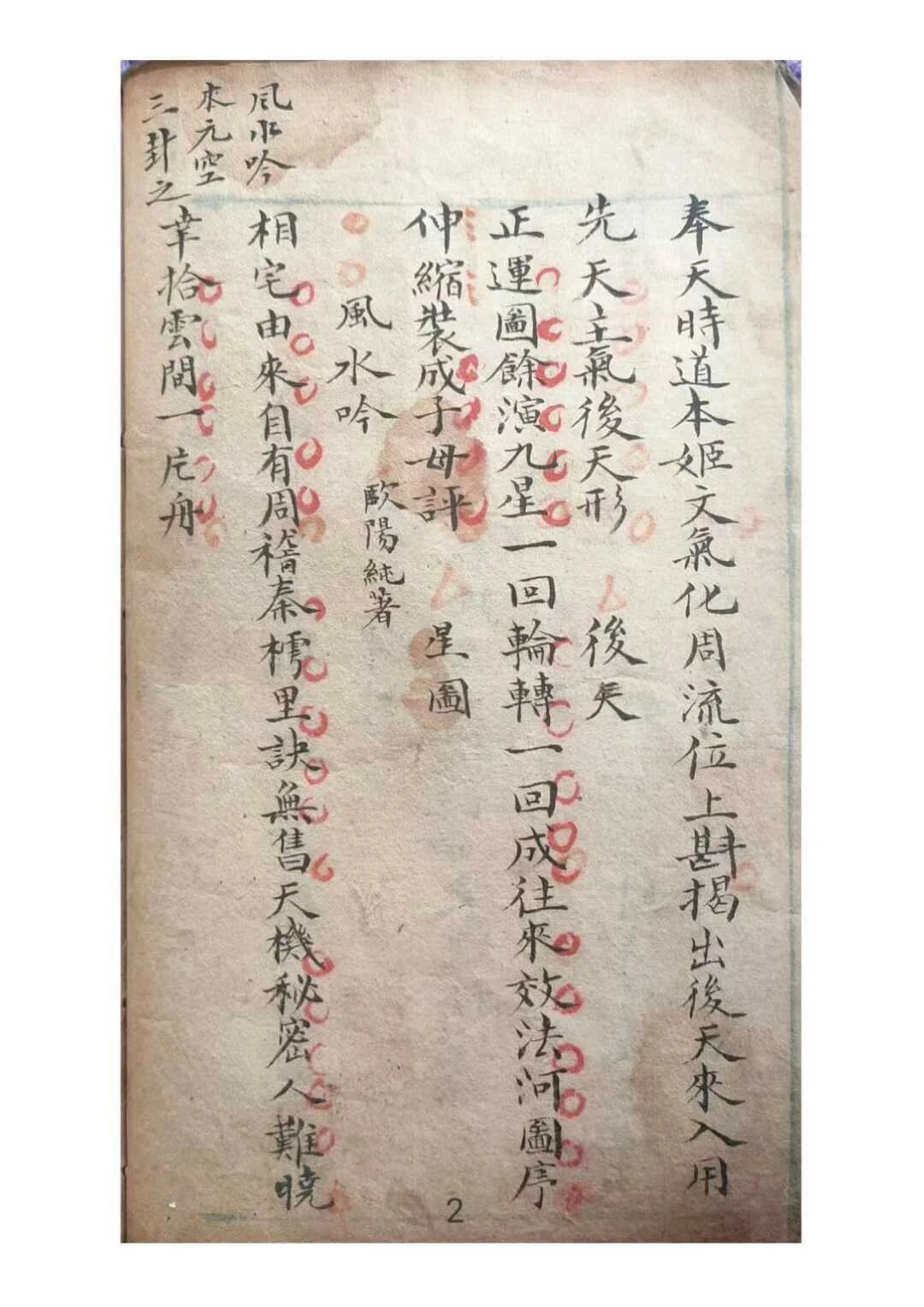 作为民间留存的清代堪舆手抄本,此书虽篇幅精炼,却涵盖风水理论、星象吉凶等核心内容。开篇“题无极子图”与欧阳纯《风水吟》奠定根基,朱笔圈注的“九星吉凶歌”痕迹犹存,字迹工整如刻,尽显传世温度。它延续《葬书》正统脉络,又融入民间实战经验,是触摸清代风水脉络的难得史料。