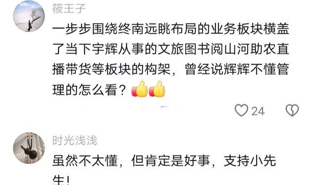 很多网友对董宇辉表示支持,短短一年的时间,从无奈离职到开设四家公司,确实不是普通人能够做到的,足以看出他的能力,也打脸那些质疑他的人。或许俞老师可能会后悔,放弃了这位难得一遇的人才,本可以成为他的左膀右臂。