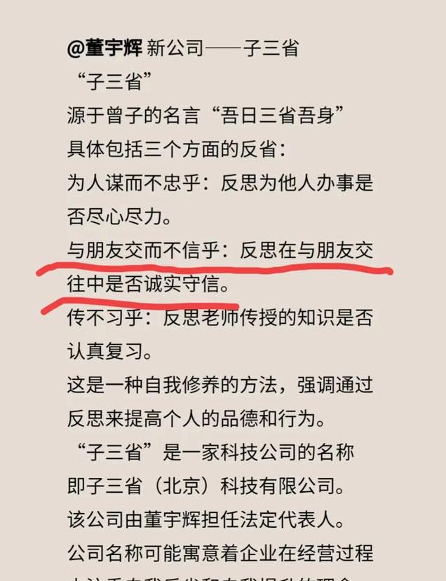 另外,再看新公司的名字子也是意味深长,子三省的意思是要经常去反思,从而解决问题。也自然会想到吾日三省吾身……这段话。不得不佩服他的才华,真是很有文化色彩。