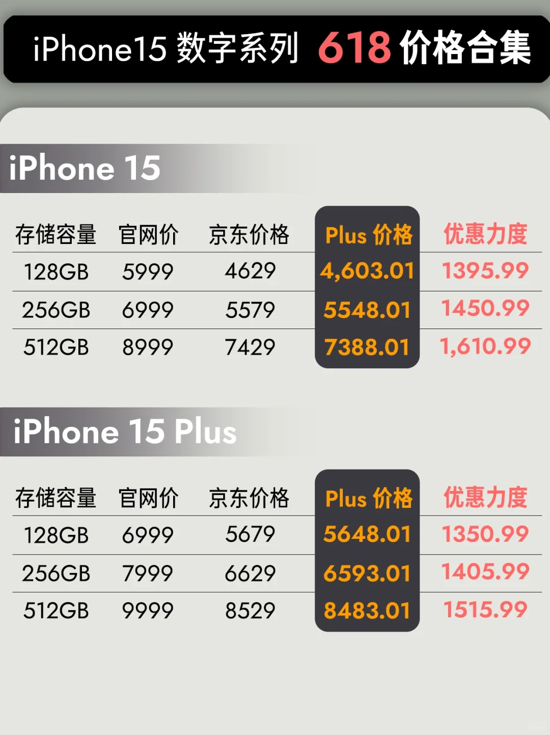 我帮大家整理了 JD 所有 iPhone15 系列的价格