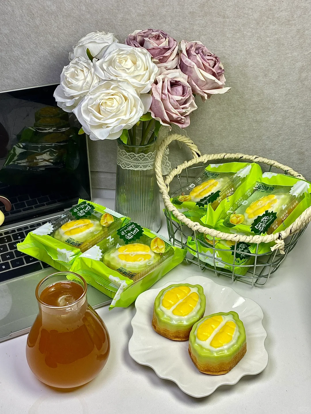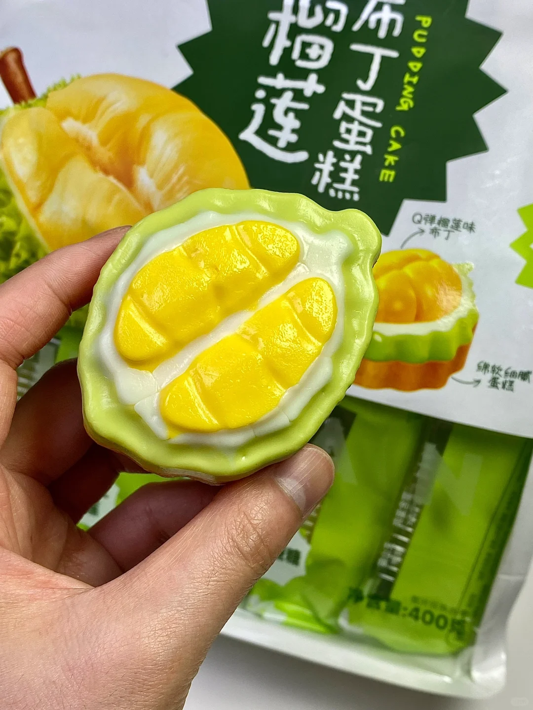 在办公室吃了一块同事给的小蛋糕 立马问了🔗 收到货 迫不及待跟你们分享了hh 谁懂!!这个蛋糕太太太可爱了 吃起来口感是奶duang duang的~ 浓郁的奶香混合着猫山王榴莲的香味,微甜不腻!蛋糕松软又绵密! 真的巨巨好吃!! 建议姐妹放在冰箱里 更好吃了😋