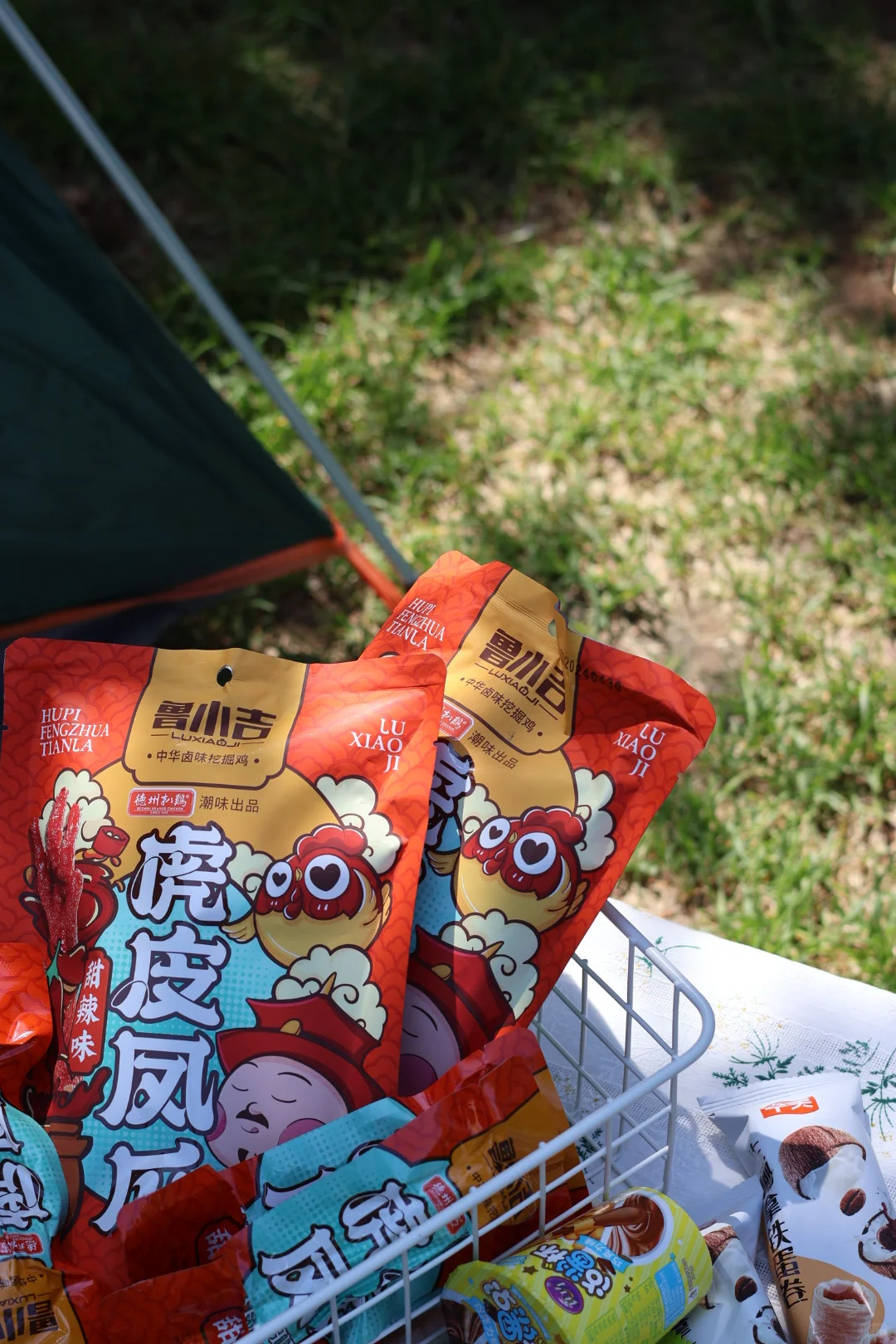 这个周日,我们一起露营,拍照,放下手机,用心陪伴。带着风筝,饮料小零食,她就很开心。每次露营,或者聚会,都会带上鲁小吉真空甜辣虎皮凤爪,是“有点甜的辣鸡爪”。