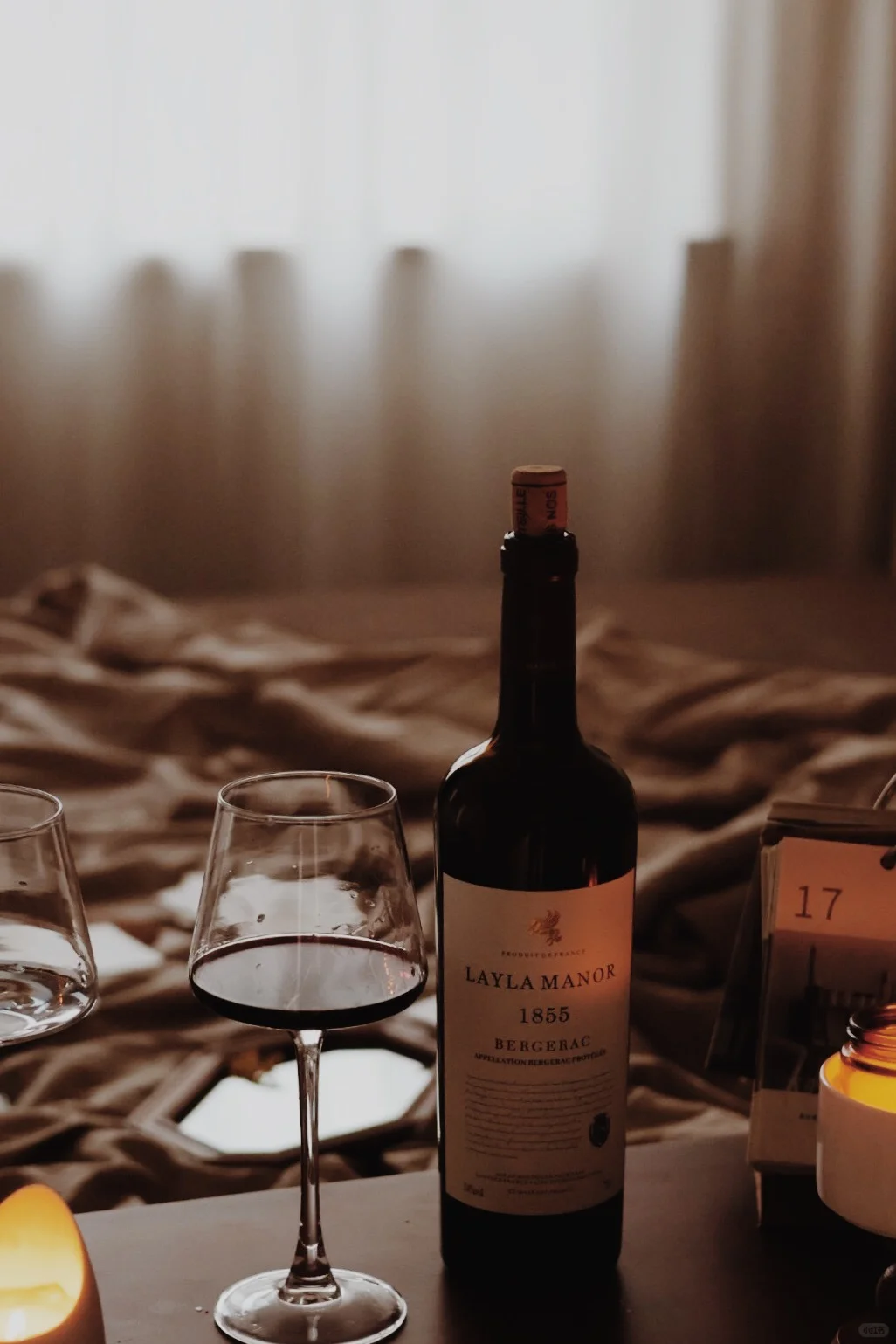 在喝的是蕾拉法国原瓶进口14度AOP级干红葡萄酒,打开瓶盖,一股黑莓蓝莓的果香扑鼻而来,口感细腻,酒体饱满,尾调还会有一点咖啡烤面包的香气。