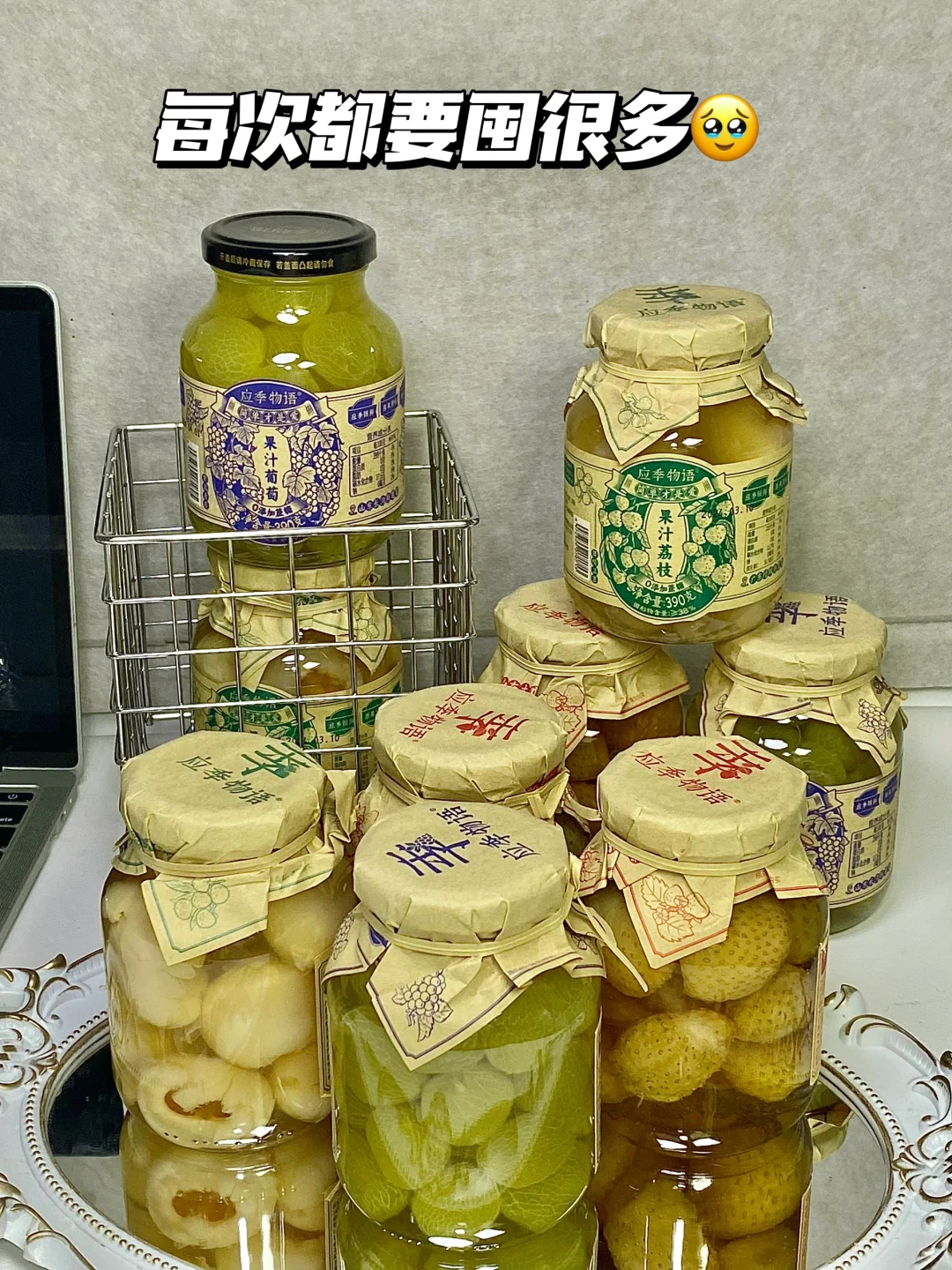 分享一下近期爱吃的水果罐头 我直接是按箱囤回来的节奏!找了很久才找到这款,无防腐剂、无色素、配料表比脸还干净的水果罐头! - 果味很浓郁,买了葡萄🍇,荔枝、草莓🍓三个口味都是不踩雷的!每一颗都是完整的果肉,巨饱满,入口也是酸酸甜甜的~ - 原料都是用的应季鲜果,很新鲜也不会甜腻~放在冰箱里冷藏一下,清爽又解腻~