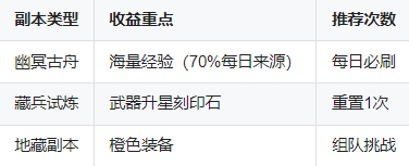幽冥古舟:每日必刷,进入前强化防具完成“天书寻主”任务(+30%经验)。