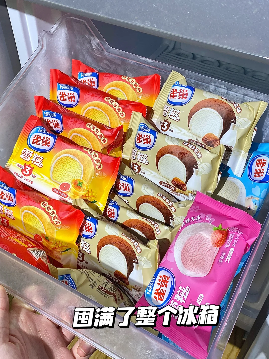 一到下午就嘴馋,总想搞点东西吃吃 刚好刷到雀巢雪糍出了新品 我一个健步就买上了![害羞R] 真真是一口惊艳!! 不得不说 雀总真的好会!新口味真巨巨好吃!![哭惹R] 脏脏牛乳味🥛 外皮裹满了100%进口可可粉,里面包裹着牛乳冰淇淋,一口下去丝滑绵密,一点都不腻~果然可可和牛乳就是绝佳CP! 杨枝甘露味🥭 经典粤式甜品口味,选用进口芒果原浆,一打开就能闻到浓浓的芒果味,搭配真材实料的冰淇凌,q弹软糯,真好吃的停不下来! 冰箱拿出来放3分钟,口感更绝!还能拉丝! 还有草莓、香草、芋泥酪酪口味,关键一个才60大卡,直接放心大胆去炫! 而且每个里面都有一个叉子,吃起来很方便!