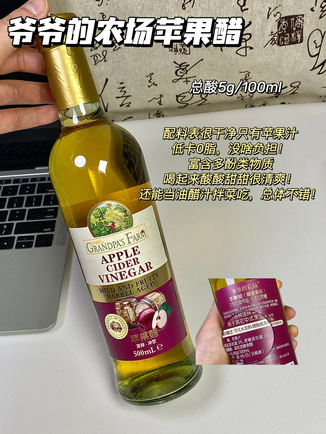 近期我喝的多的是爷爷的农场苹果醋,配料表干干净净,只有苹果汁!喝起来很放心而且无负担!总酸含量高每100毫升≥5g含量,味道很清新,苹果果香很浓郁,平时饭后喝一点也很解腻,也很适合减脂期的姐妹!