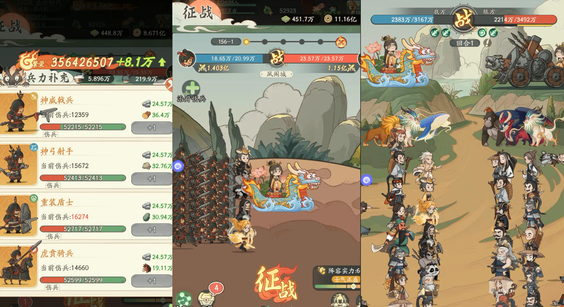 征战就是率领名仕和士兵进行战斗,提升名仕和军事等级,能更快速的取得胜利,同时会造成受伤和损失,这就需要补充兵力和治疗。这个版本的好处就是,很多稀有名仕都可以不花米获取,诸葛亮、项羽、蚩尤、武则天等等,强战力能轻松获取。