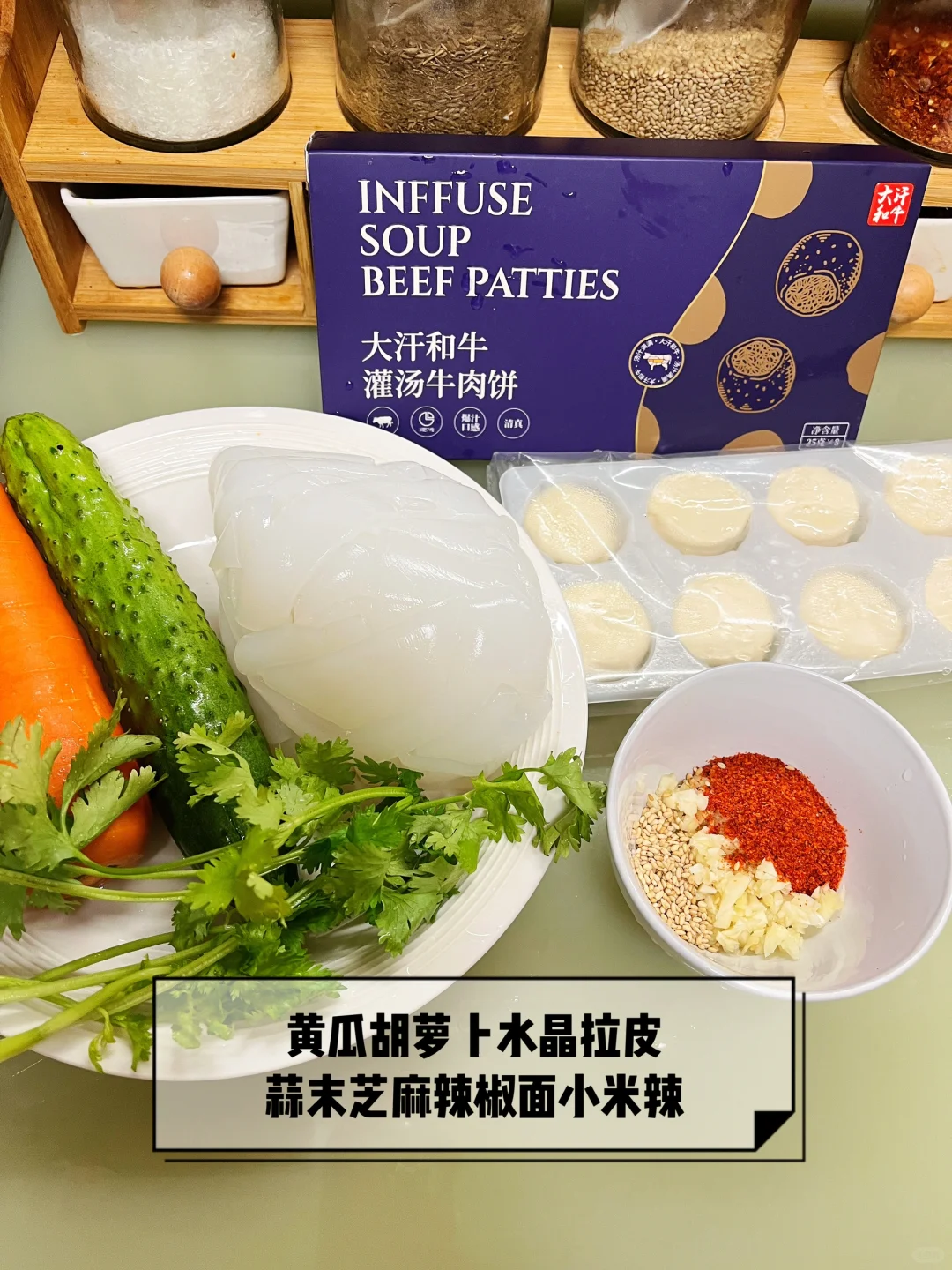 夏天不知道吃什么就试试这个东北大拉皮[赞R][赞R] 满满的辣酱流汁的拉皮一口下去太上头了[偷笑R][偷笑R] 东北人餐馆点菜频率超多的菜[飞吻R][飞吻R] 吃过一次就会爱上,搭配上我新入手的和牛牛肉包,简简单单一餐,方便快速!![派对R][派对R] 大汗和牛灌汤饼,和牛灌汤牛肉包[吧唧R][吧唧R] 和牛馅料很足,配料表干干净净,皮薄馅大,一口下去满满的肉馅,做法简单煎烤蒸,空气炸锅也可以!!![色色R][色色R][色色R]