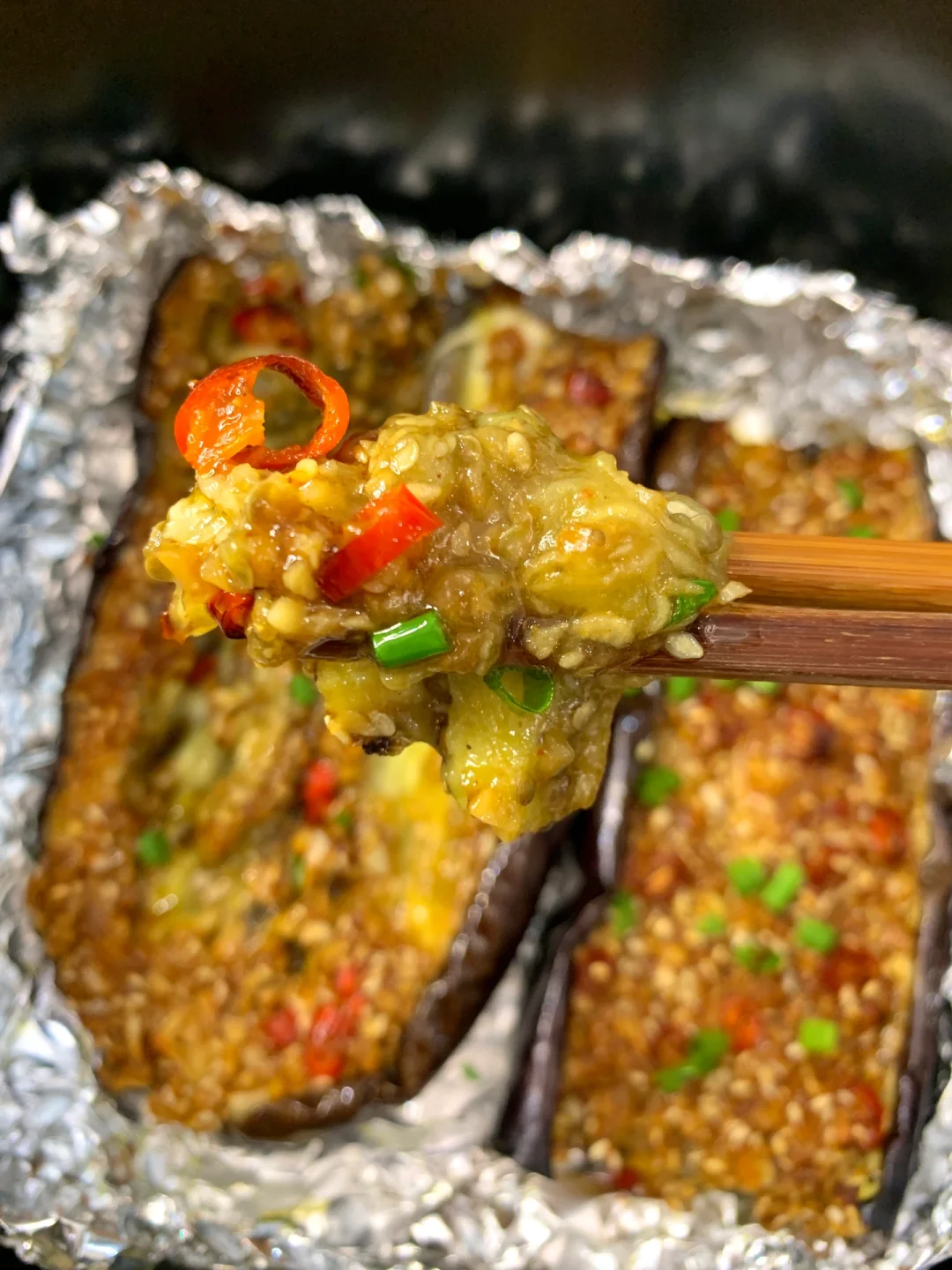 [彩虹R][彩虹R]空气炸锅炸锅做烤茄子真的比外面烧烤店的还好吃!!学会这个料汁做出来超级入味,姐妹们一定要试试~