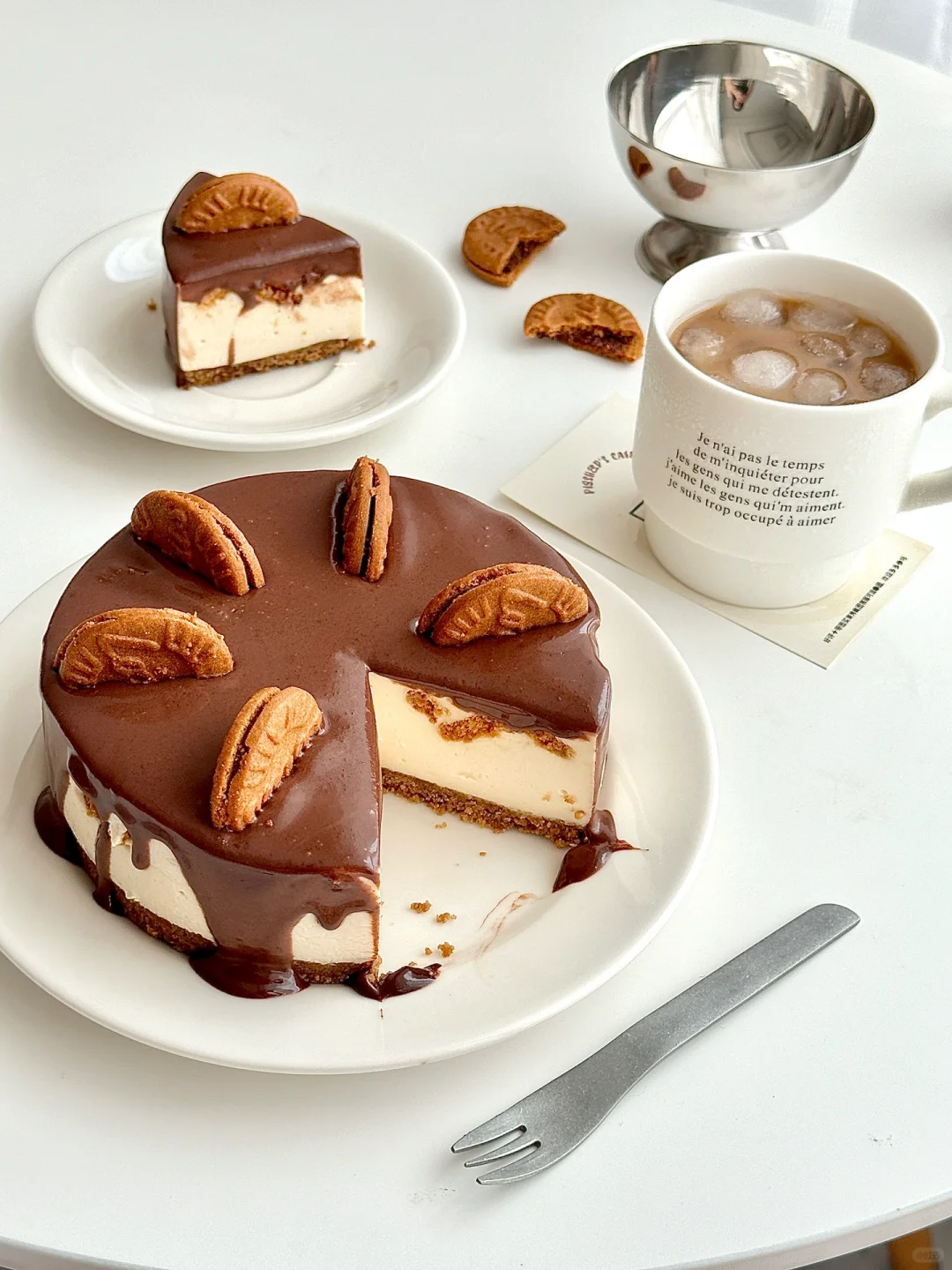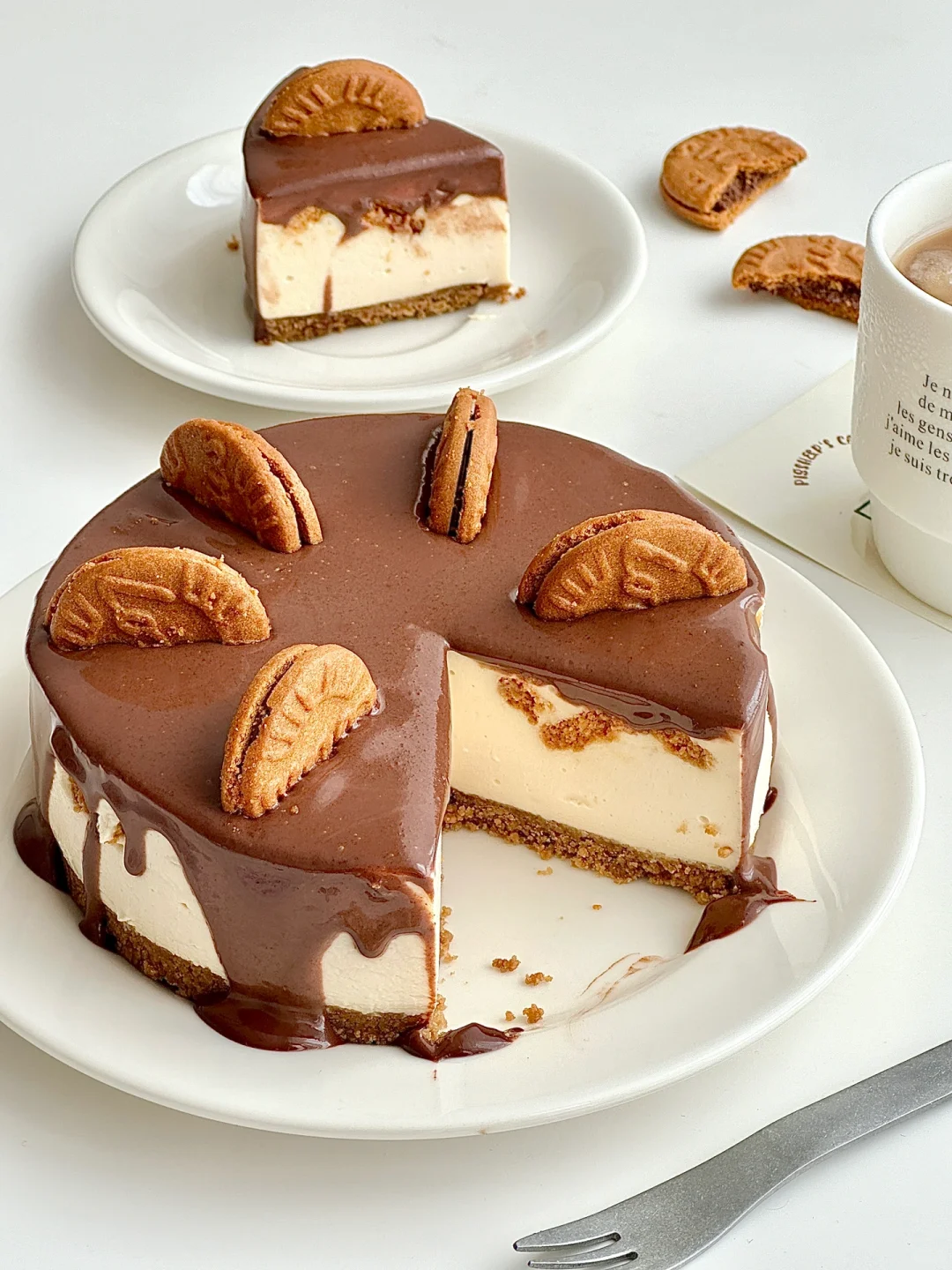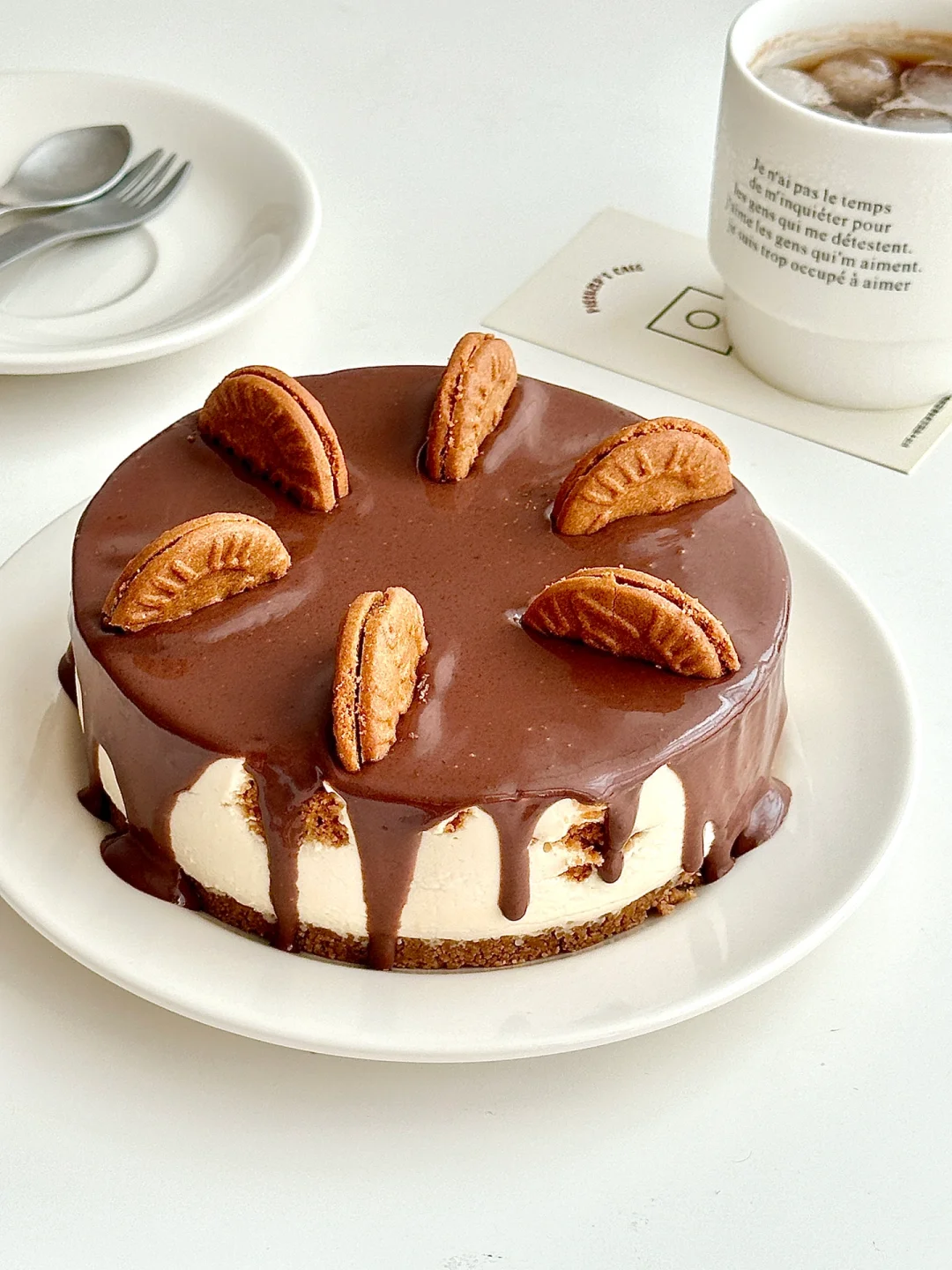 ❻巧克力➕淡奶油隔热水融化,倒在蛋糕上面,再放饼干装饰即可