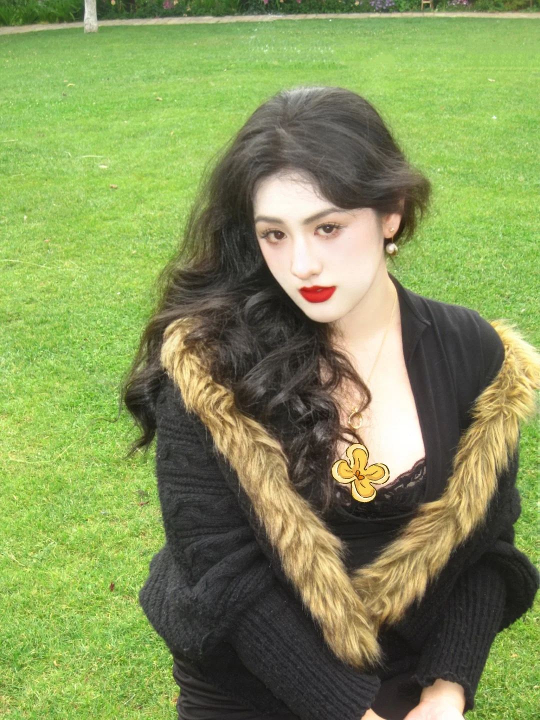 黑发红唇的冲击力是无法超越的经典[哭惹R][哭惹R]
