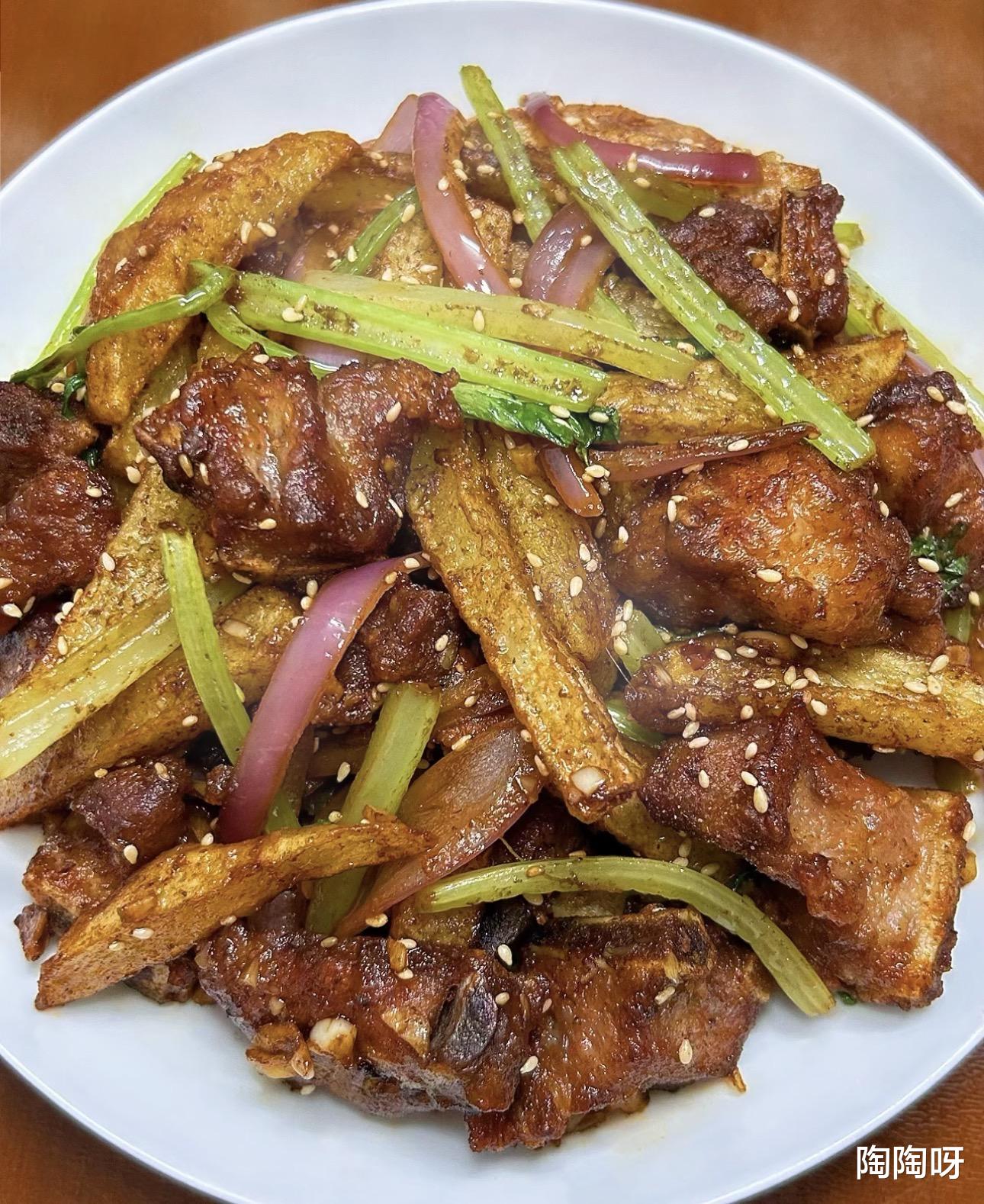 这道菜,绝对是米饭杀手中的战斗机,排骨外焦里嫩,裹满了香辣入味的酱汁,再配上爽脆的配菜,一口下去,那叫一个香!