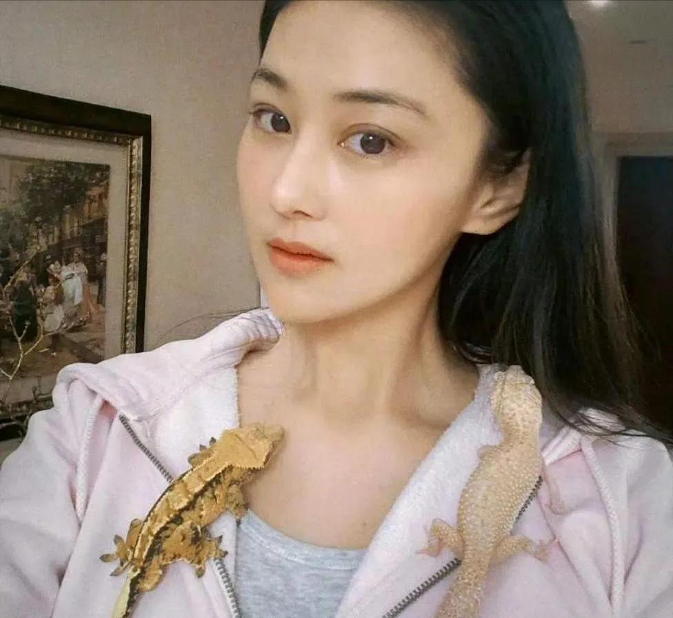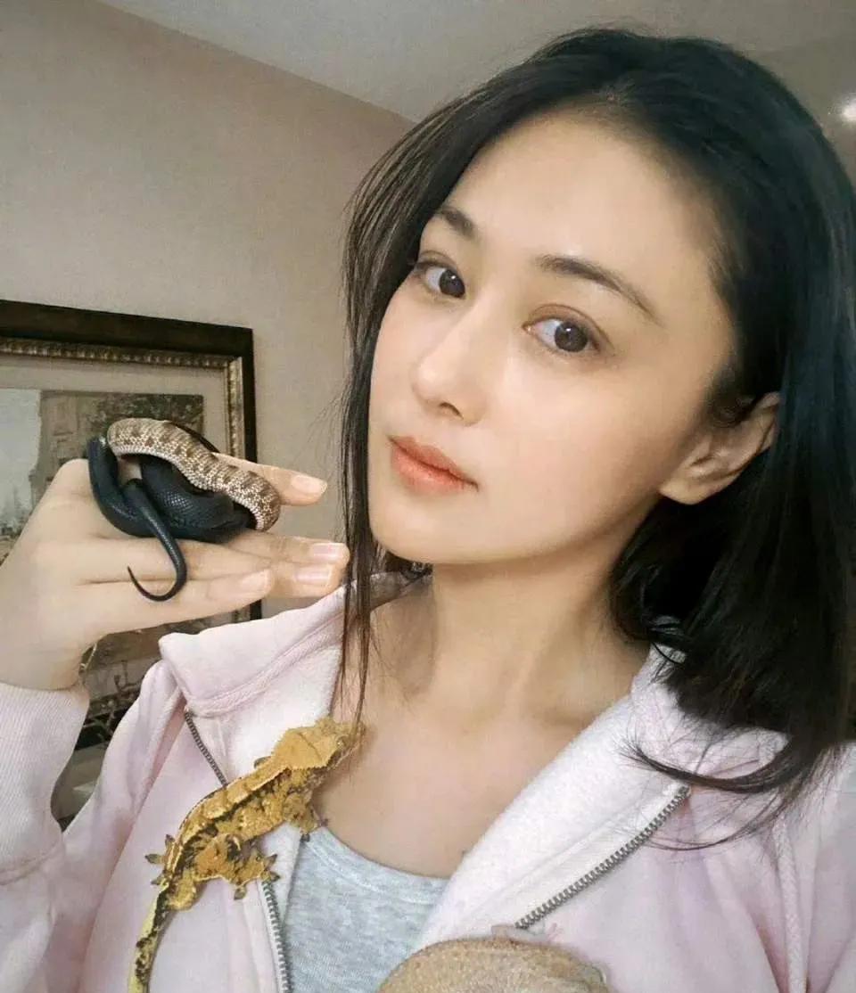 37岁张馨予全素颜出镜,灰色内衣粉色外套,胸前两只蜥蜴太可爱了
