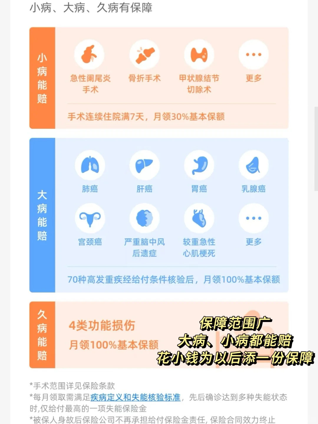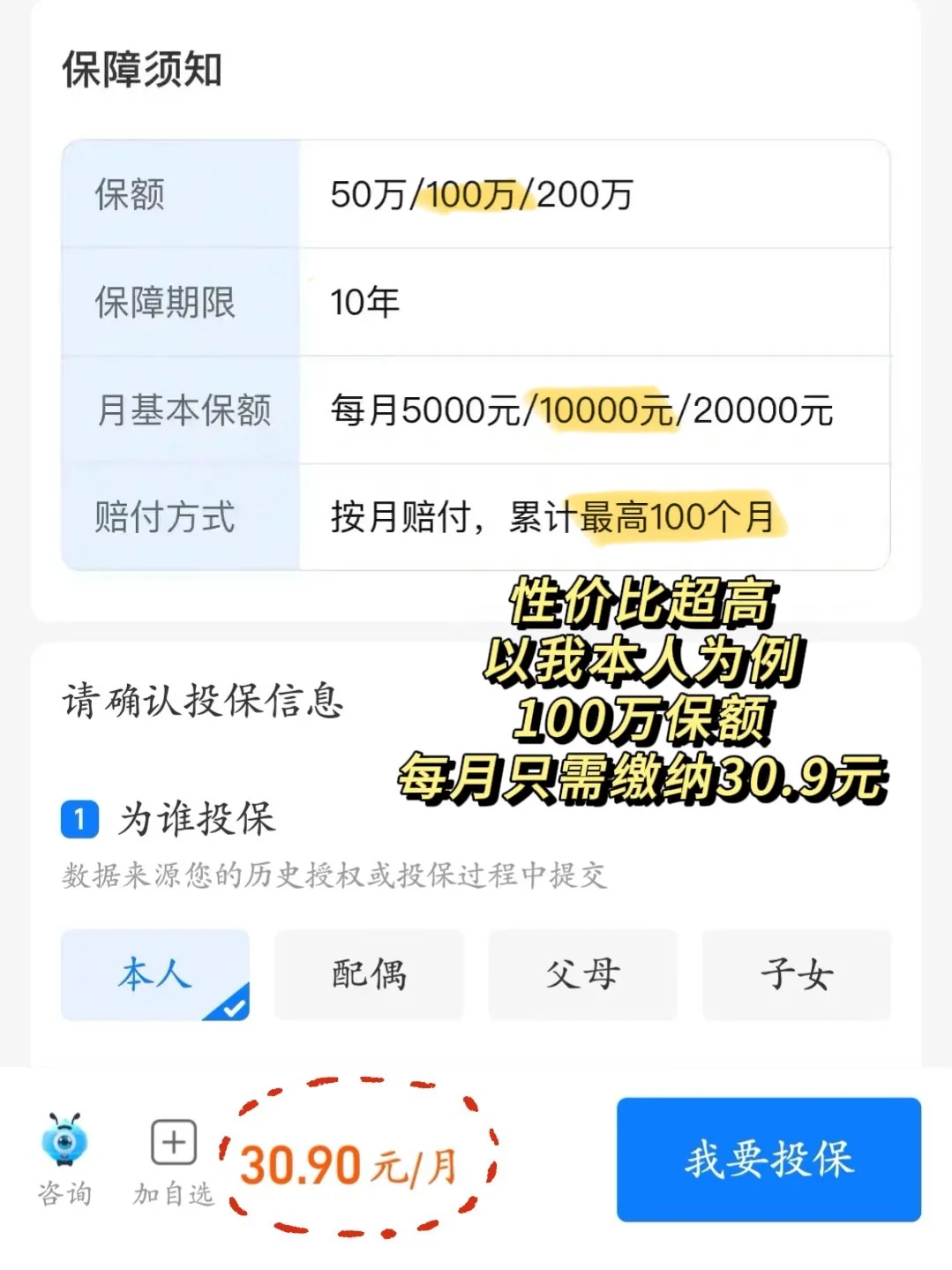 我们家的人对🏠比较痴迷 所以手里有闲钱就喜欢买房子 我也是买了两套房子 年纪轻轻就背上了房贷[捂脸R] —— 因为我的收入来源主要是 自己创业开公司+广告收入 虽然现在收入很高 但是按照山东人的想法 就是极其不稳定 —— 所以我一直在找 有没有可以在我生病或意外不能工作 收入减少或没有的时候 可以给我发工资的办法 能保障我交房贷后 还能维持正常生活 这个时候 我了解到了【青山在·收入保障险】 是可以在生病或意外 导致暂时不能工作 收入减少或没有了 保险公司会按月发一笔[钱袋R]的 —— 如果我选择100万的保额 以我现在的年纪 每月只需要缴纳30.9元 生大病了每个月赔付1万元 用来维系基本的生活开支 赔付时长蕞长可达100个月 —— 1万元交完房贷后 剩余部分仍然够我每个月的生活费 相当于生病不上班 也有保险公司 月月给我发工资! 实在是太划算了[赞R] —— 觉得每月发1万不合适 也可以选每月发5000元(保费价格更低) 或者每月发2万元(赔付更多) —— 而且它赔付的范围广 除了70种高发重疾可赔 小病手术住院也能赔当月保额的30% 对于现在动不动有点小毛病的打工人来说 很实用了[红色心形R] —— 需要工作来换取窝囊费的宝子们 都可以支付宝上搜~【青山在】 看看这个收入险 上班已经不容易了 手里这份工资 可一定要保住呀!