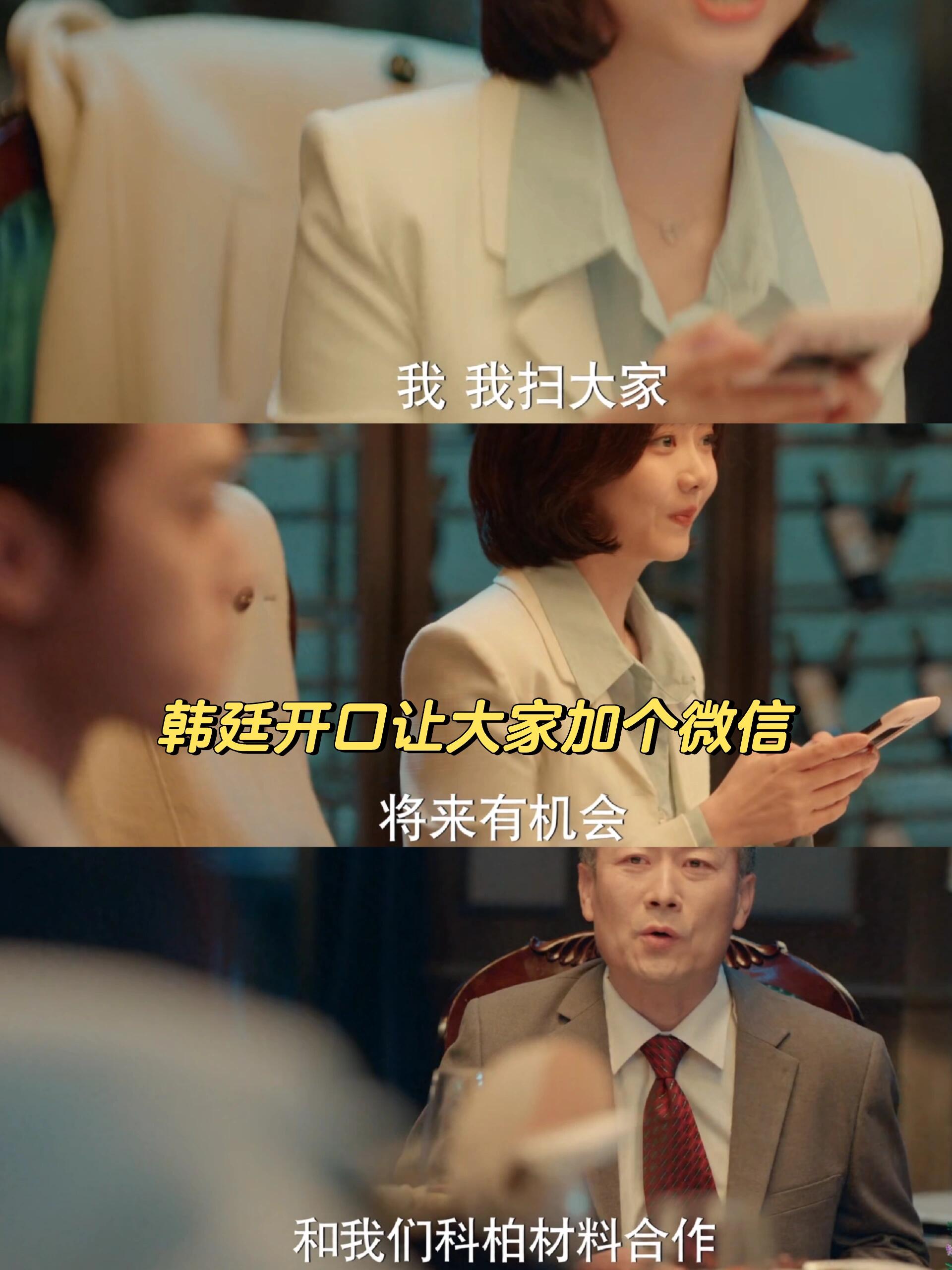 大家在恭维纪星的时候,韩廷及时打断,让纪星向大家学习,顺势提出加微信。纪星虚心的扫大家,韩廷直接打断,让大家加纪星,这直接让纪星变得主动地位!太妙了!