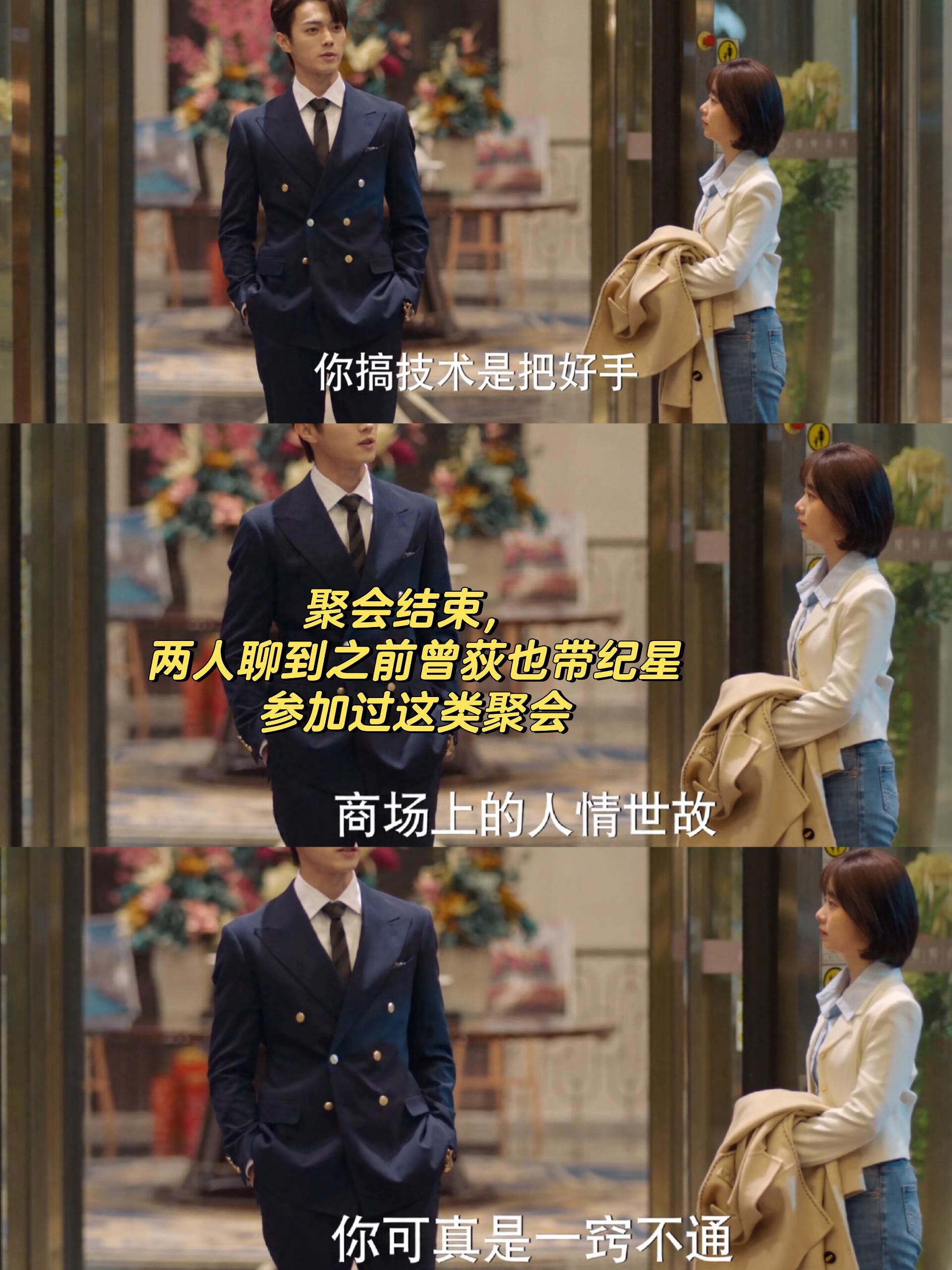 饭局结束,两人聊到之前曾荻也带纪星来过这样的饭局,纪星现在还不明白什么用意,还以为就是让她去讲解技术,直到韩廷点破,为什么饭局都会有漂亮女孩出现,纪星才恍然大悟,韩廷这是又给纪星上了一课!