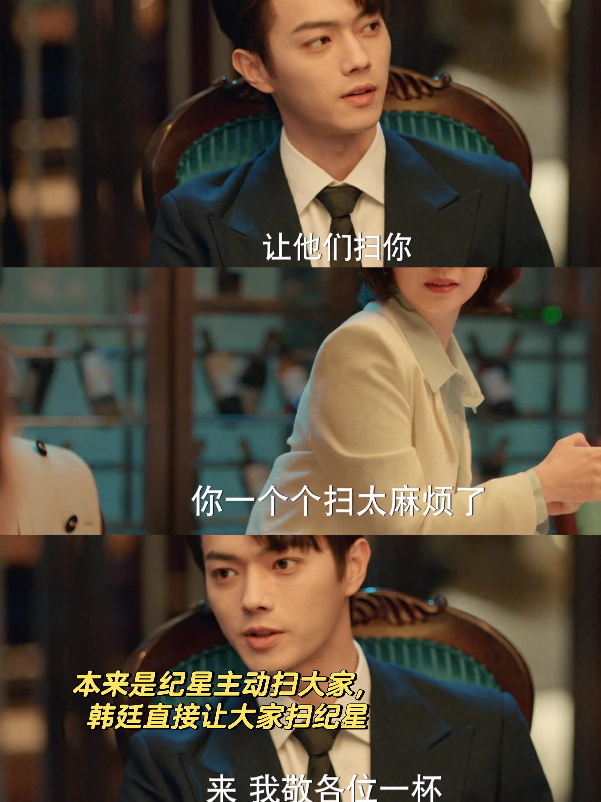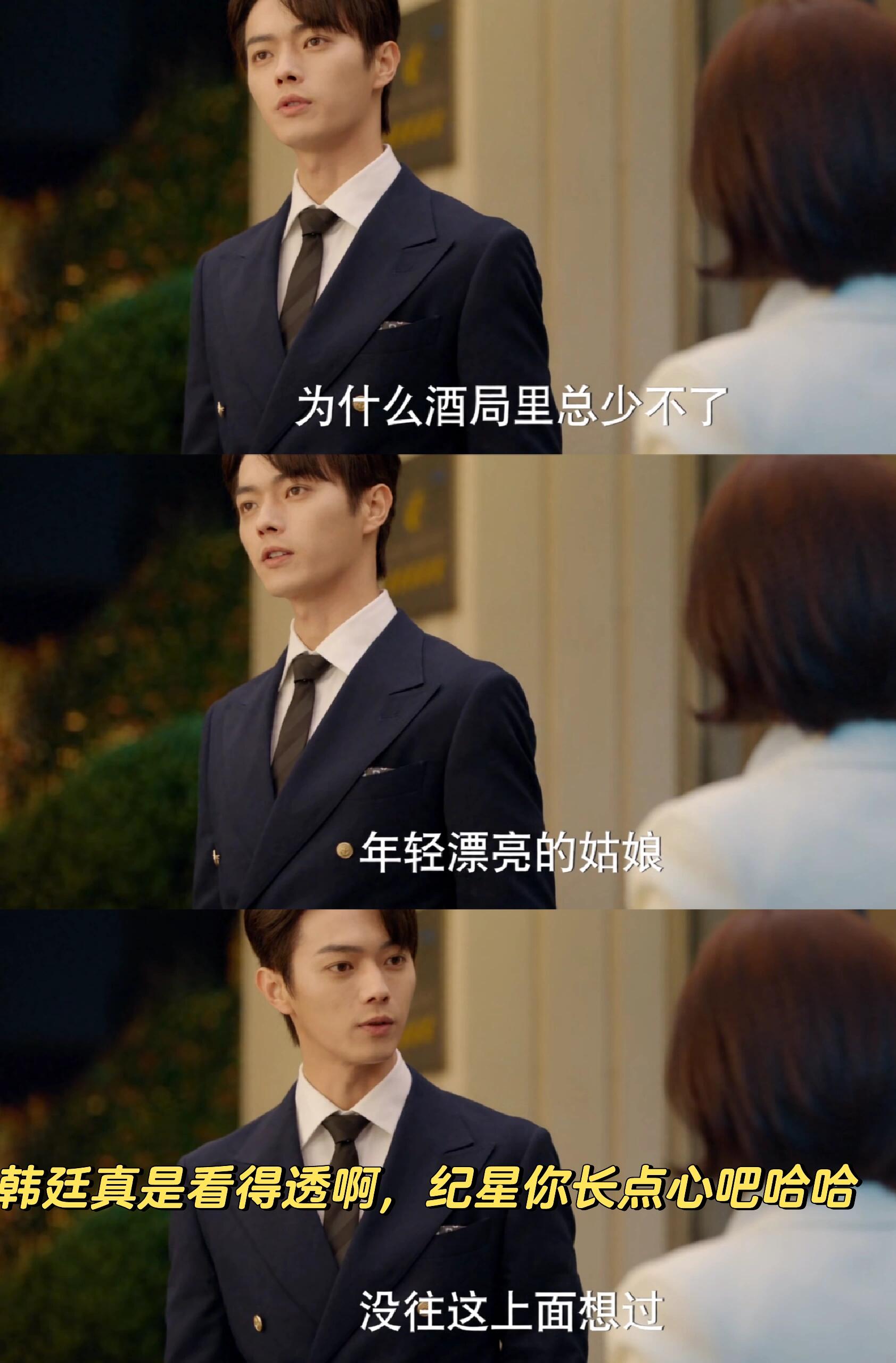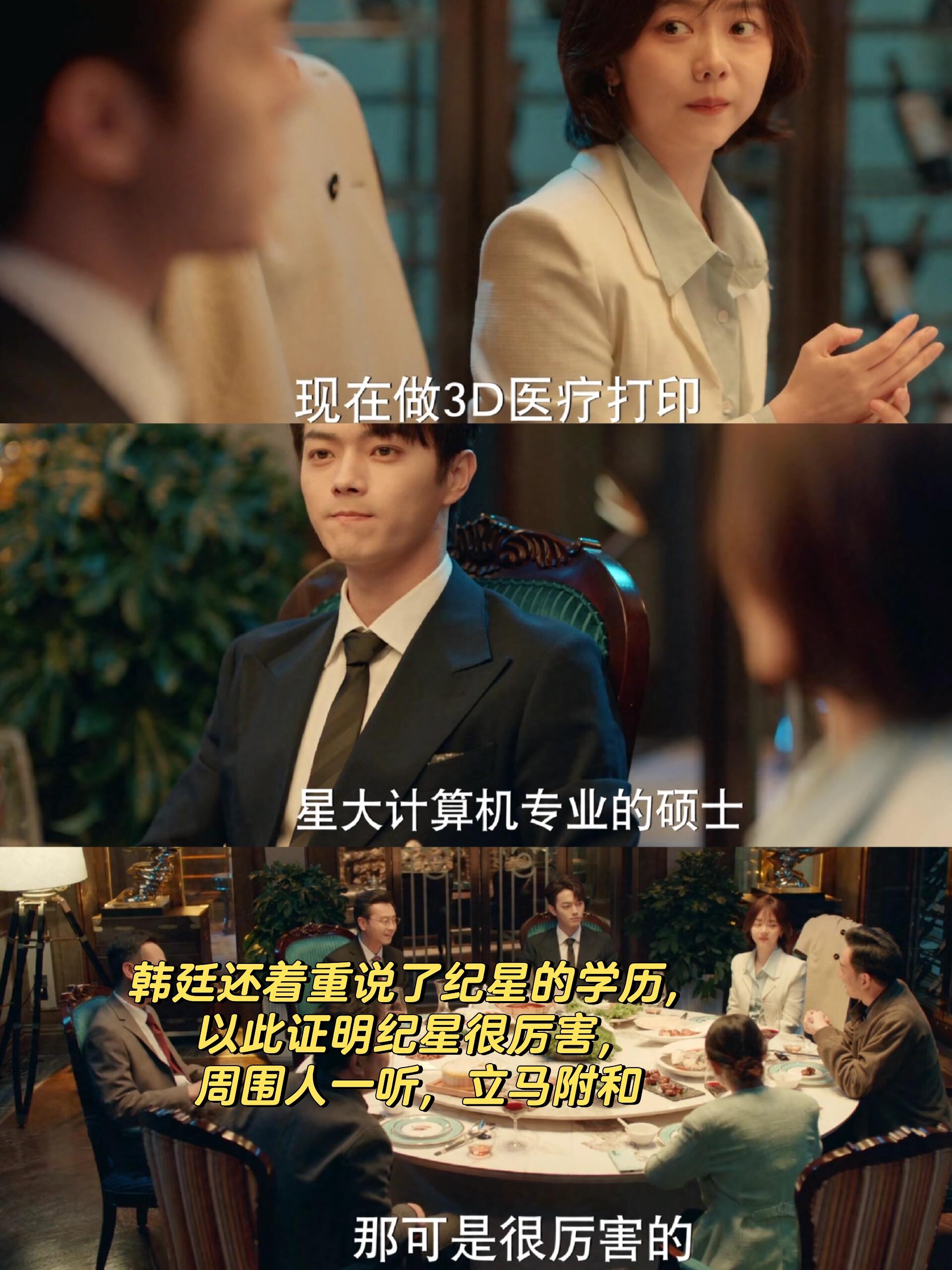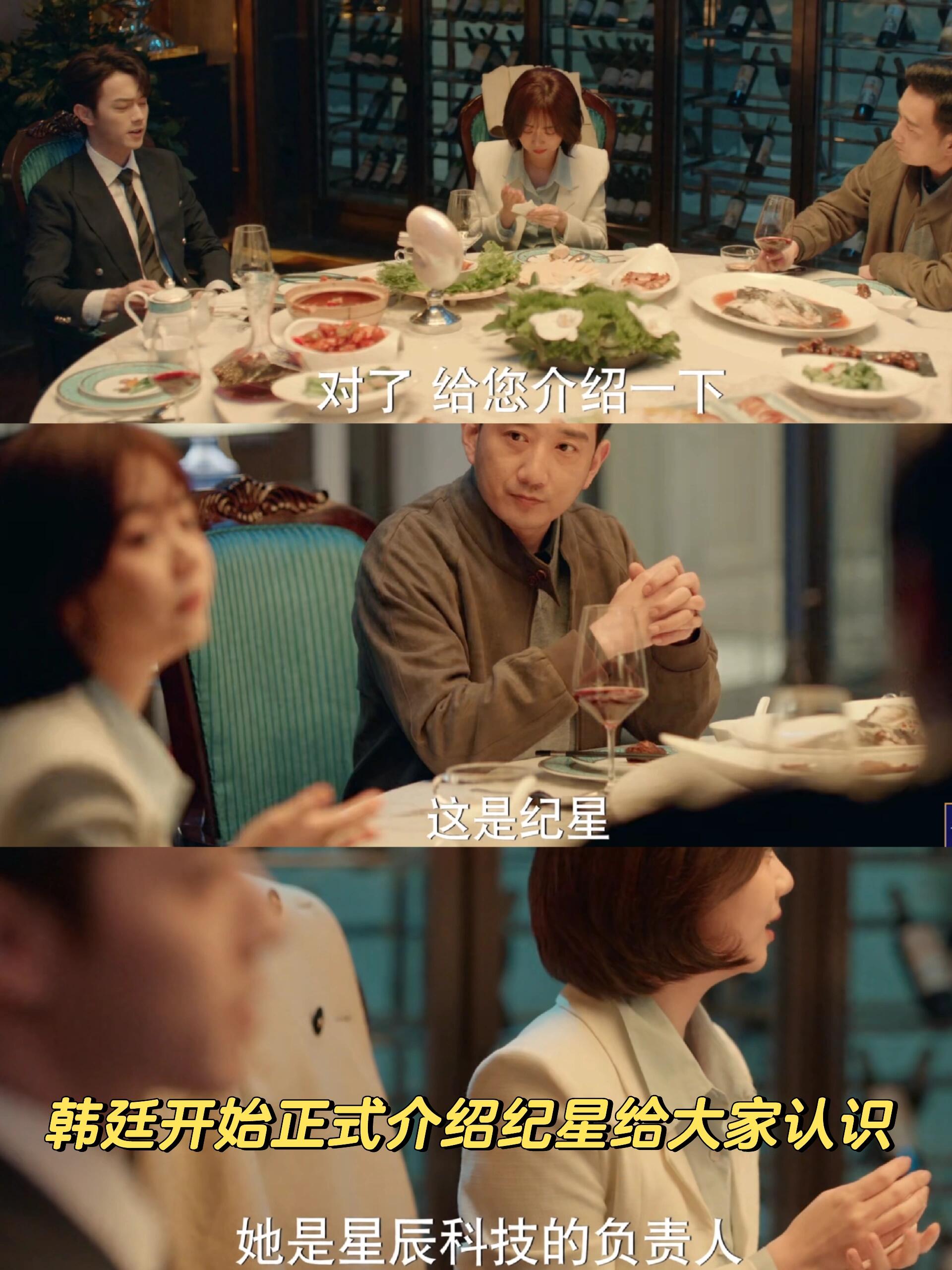 在正式介绍纪星的时候,不仅说她年轻有为,学历好,还说不想错过人才,所以才要投资她,这不就是表明,我韩廷投资的人,肯定是有真材实料的!给足了纪星面子!