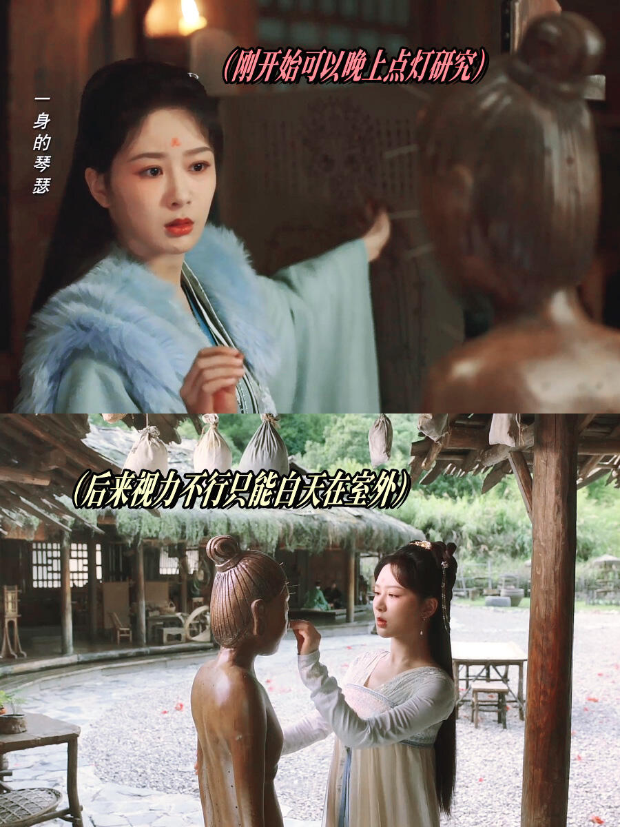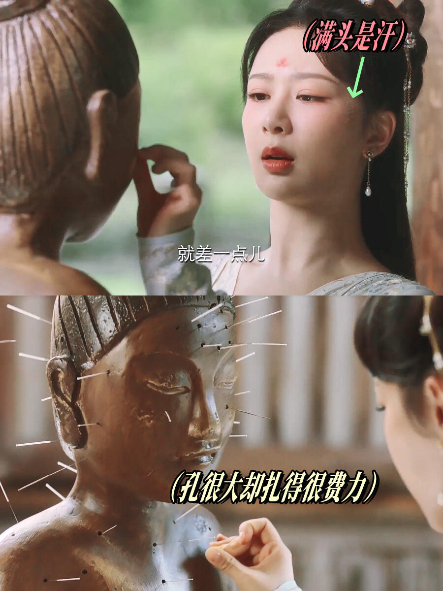 🔺刚开始她还能晚上挑灯针灸模型,后面其实就只能白天在屋子外面研究,而且插得很费劲,明明那么大的孔啊,因为看不清,所以急得满头是汗!(紫妹诠释得好细致)