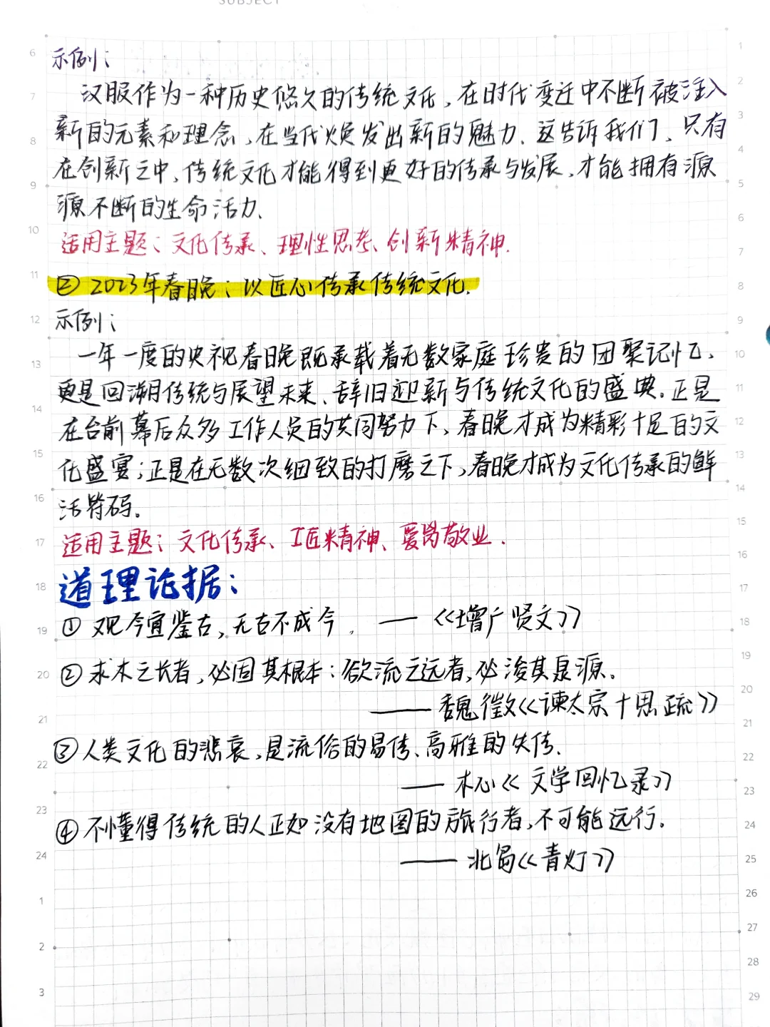 💭我来更新一期文化传承的素材啦!! 句子摘抄: 人之所以悲哀, 是因为我们留不住岁月, 更无法不承认, 青春,有一日是要这样自然地消失过去。 而人之可贵, 也在于我们因着时光环境的改变, 在生活上得到长进。 岁月的流逝固然是无可奈何, 而人的渐渐蜕变, 却又脱不出时光的力量。 —三毛《雨季不再来》