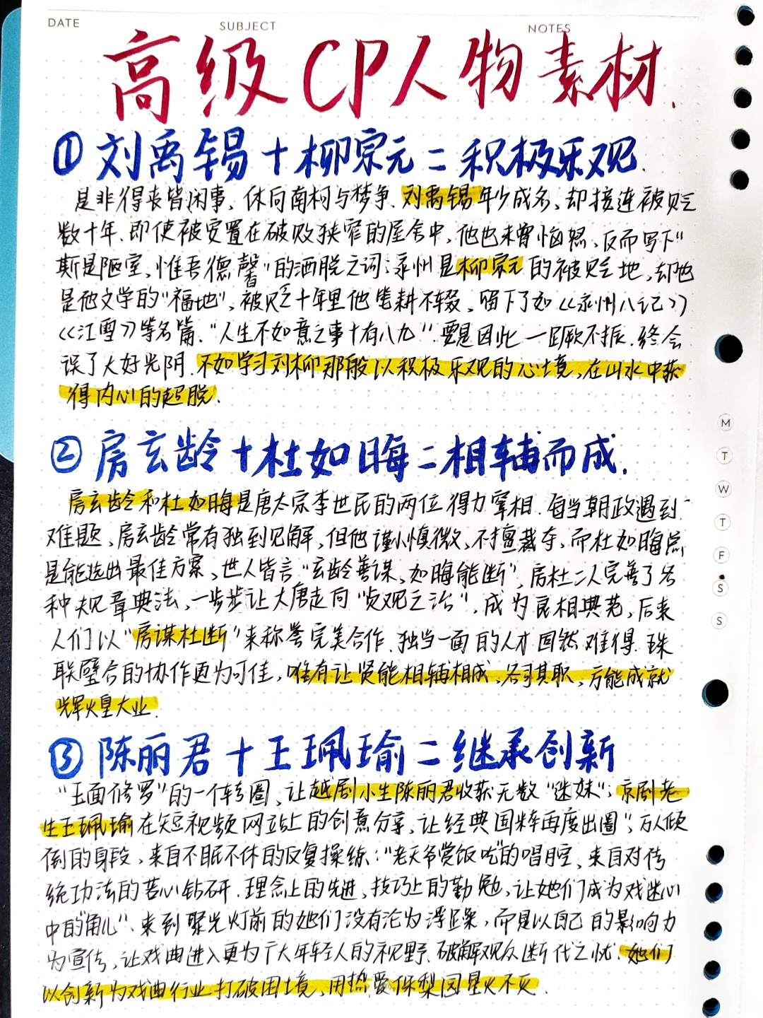 ✅刘禹锡+柳宗元=积极乐观 ✅房玄龄+杜如晦=相辅相成 ✅陈丽君+王佩瑜=集成创新