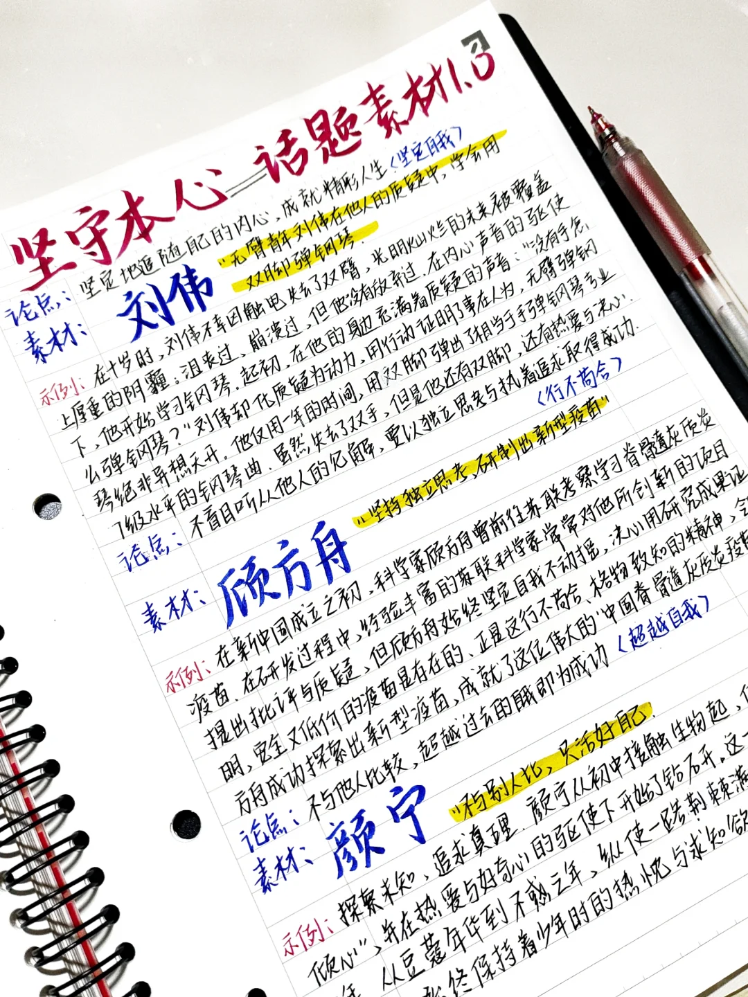 📚第一弹话题素材: —坚守本心 人物素材: ✅刘伟 ✅顾方舟 ✅颜宁
