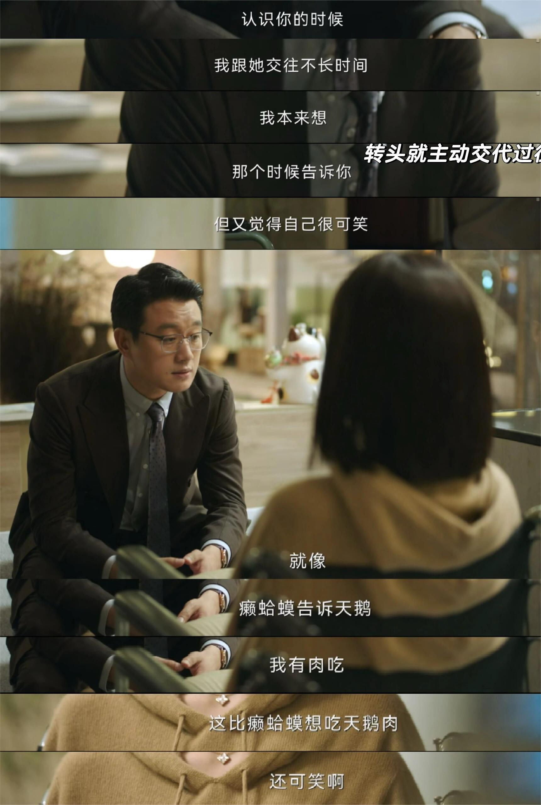顾己鸣把人性的复杂发挥得淋漓尽致,落魄、势利、伪装、阴暗在他身上毫无违和感,对于他来说爱情只是他权衡利弊的附属品。