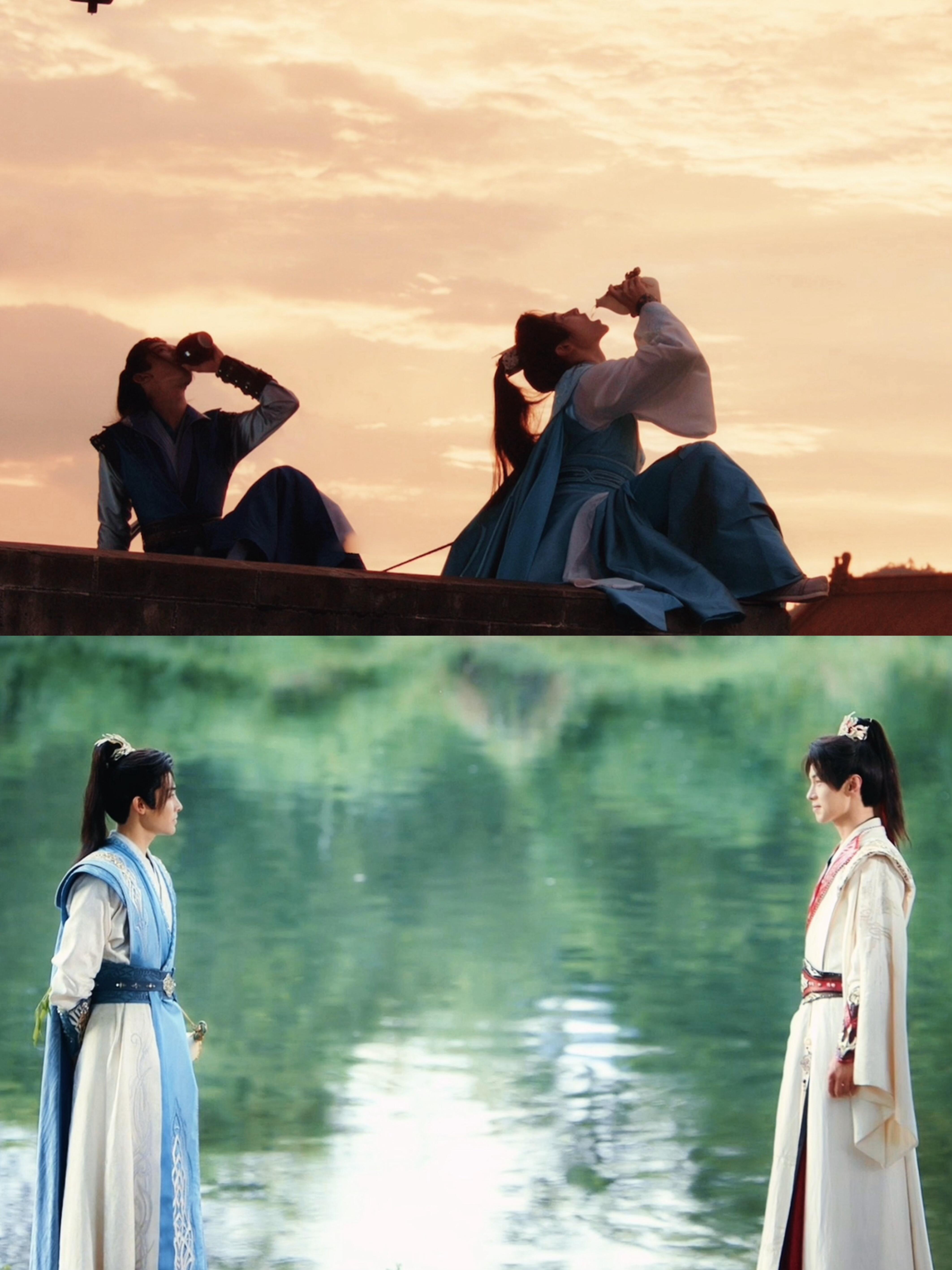 他俩年少时曾相约“一人向北,一人往南,酒剑成仙便是再见之时”。久别重逢,相爱相鲨,从年少之约到顶峰相见,两个人相视一笑时宿命感好强!