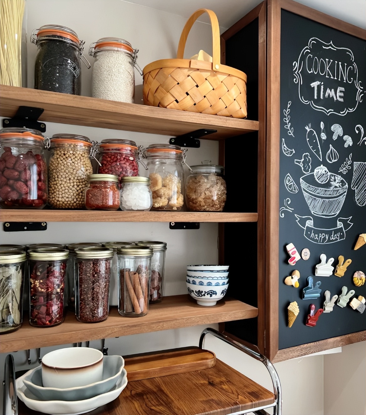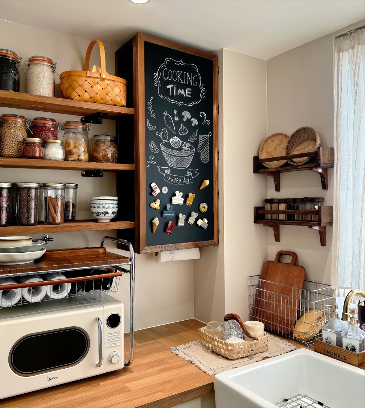 要是不说,谁知道里面藏着燃气热水器呢?平时不仅可以在上面粘贴厨房用品,还可以用粉笔写字。