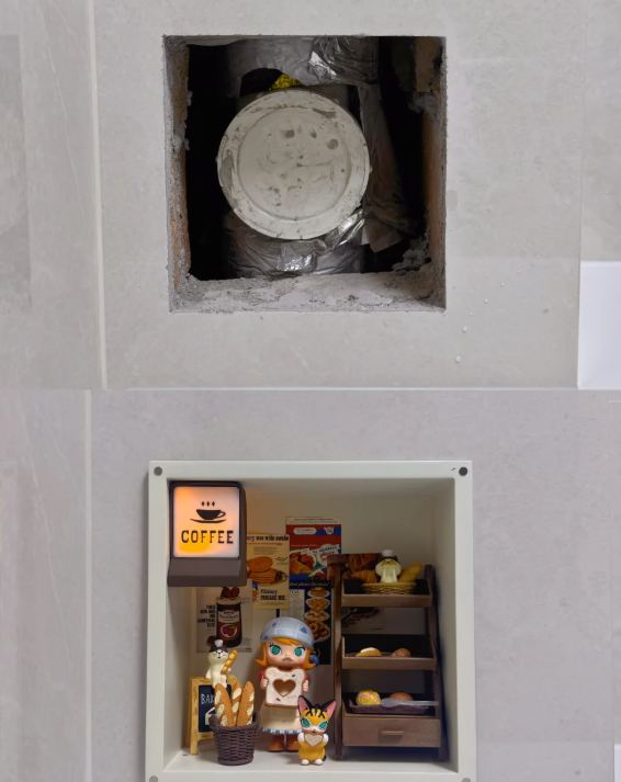 把壁龛放进孔洞里面,再放入自己喜欢的摆件,轻轻松松搞定!