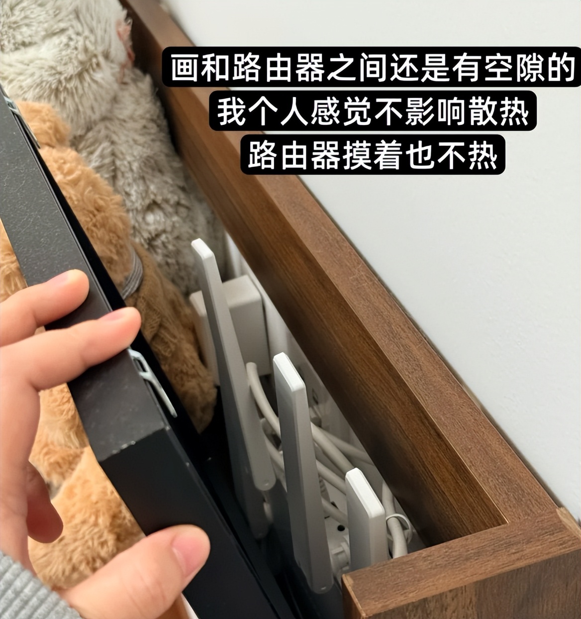 画和路由器之间都是有缝隙的,所以不会影响信号,也不会影响路由器的散热。