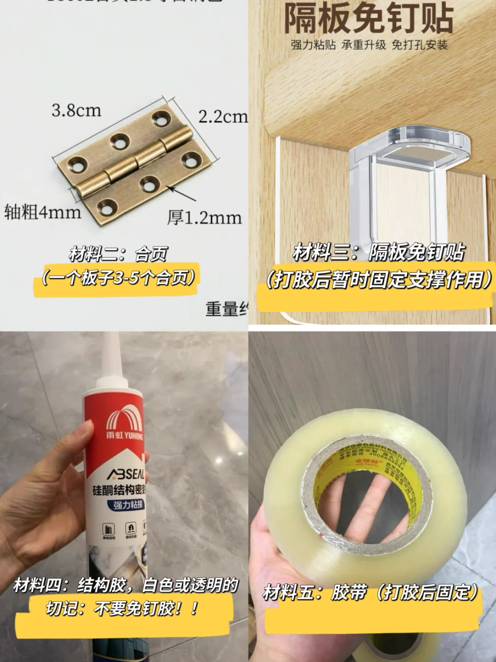 合页(需要3~5个左右)、结构胶、隔板免钉贴、磁吸贴片