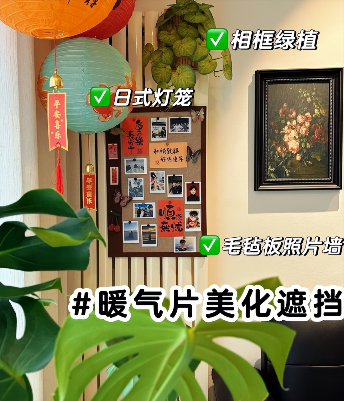 对于暖气片的遮丑方式,网上有很多妙招,大家可以根据自己的喜好选择,基本都是低成本就能实现遮丑。