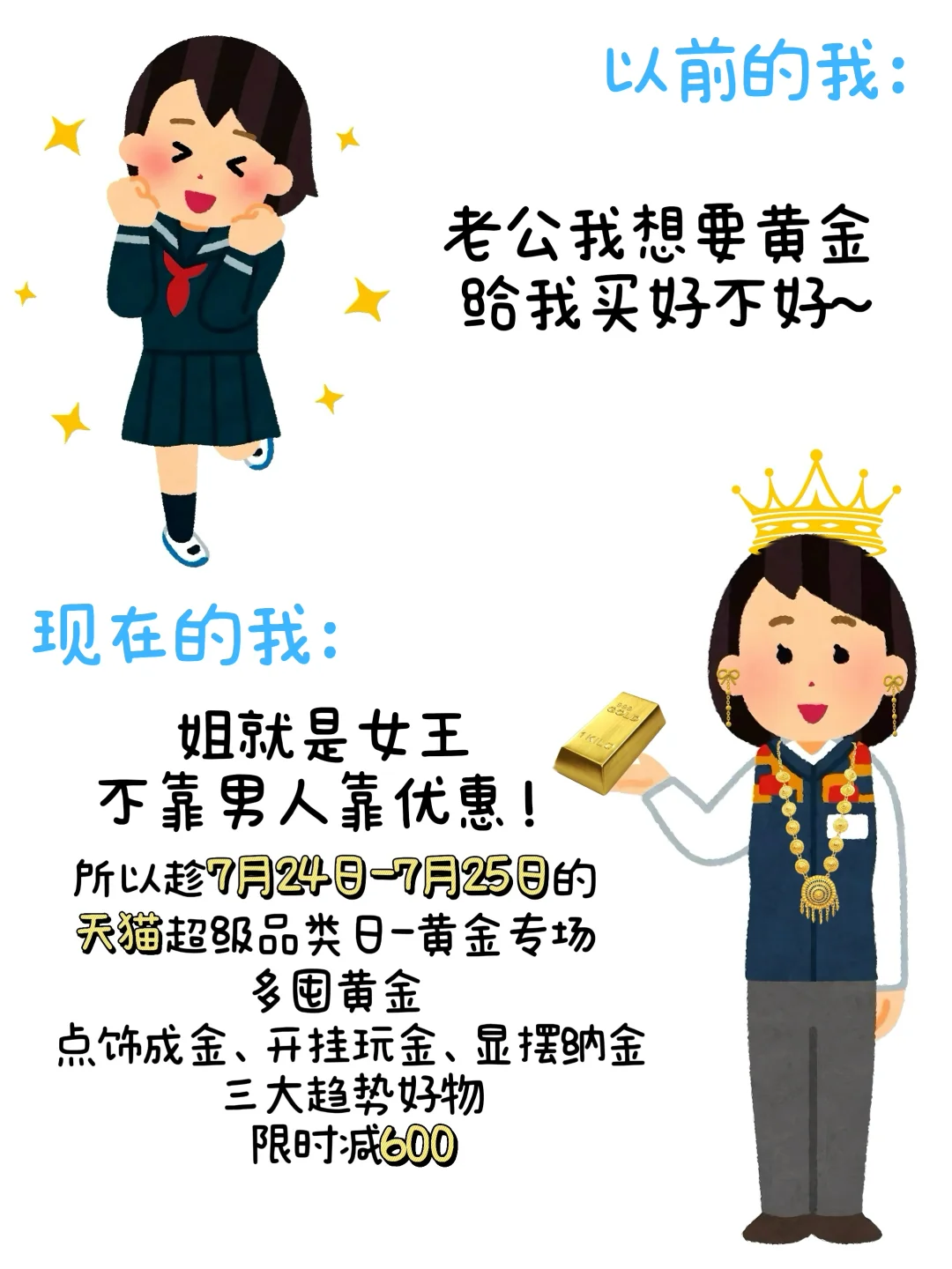 初中的时候 学校里有个女生有点偏笨 说话学习都让人觉得她缺根筋 加上她家里重男轻女 对她的照顾也不是很细心 她看起来像一个脏脏包 在学校里也没什么朋友 —— 因为她是我三姨夫的亲戚 也就算我的远房亲戚 所以我去她班里找我朋友玩 看见有人捉弄她之类的 我就会上前训斥其他小孩 —— 其实这对我而言 不过顺手的事 但她因此十分崇拜我 印象里她很喜欢缠着我说话 但我朋友很多 所以跟她相处时间很少 更多的时候是她眼巴巴的看着我 我心软陪她玩一会儿 但往往会因为她实在无趣 玩了一会儿我就跑了 —— 她读完初中就不读了 我们也失去了联系 再次听到她消息 是我疫情不返校 在三姨家住了一段时间 我三姨跟我说: 小C是不是你同学来着 她结婚生孩子了 作孽哦 从一个重男轻女的家庭 到了另一个重男轻女的家庭 我急切的问:那她生的男孩女孩 三姨:男孩 我长长的舒了一口气: 男孩... 是男孩就好 日子会好过点... —— 后来我在街上偶遇了推着孩子的她 她依然很喜欢缠着我说话 我:幸亏你生了个男孩 不然还得再生 生孩子可疼了吧 你还那么瘦 她:我不想要了 太疼了 但是婆家还想再要一个儿子呢 不过幸好我们养不起第二个孩子... —— 前几天接卫生巾广告做公益 我送了一些卫生巾给山区女生 不知怎么 突然就想到她了 想着也给她送一份 但感觉只送卫生巾有点少 想起来那年她跟我说 她想要个金耳坠 那种长长的 有流苏的 结婚的时候她老公答应了 孩子都生了 她还是没等到 于是我买了个流苏金耳坠 一起送到我姨家 等她回娘家捎给她 —— 我姨: 金耳坠没问题 卫生巾就不必了 她又怀孕了 我:啊? 她:这不我们村拆迁 她婆家寻思多生一个儿子 她娘家就算不分财产给这个女儿 还有两个大外孙呢 我干巴巴的附和着 灰溜溜的带着卫生巾回来了 —— 回家后我就在想 我能为她做点什么呢 想了几天也没什么答案 这个时候 我看到了一条品牌方邀约: 7月24日-25日 天猫超级品类日 黄金专场买黄金 点饰成金、开挂玩金、显摆纳金 三大趋势好物 限时减600 我跟我姨说: 吊坠先别送了 我凑个三金给她 正好天猫有优惠 比较划算 我姨:你真是有钱飘了 你们一两年才见一面 你装什么大款 我: 我总觉得有点对不起她 如果初中她围着我转 我多点耐心的话 她现在会不会命运不同 这点黄金就算我给她的底气了 以后婚姻不幸福 反正黄金保值 卖了也能维持她一段时间的生活