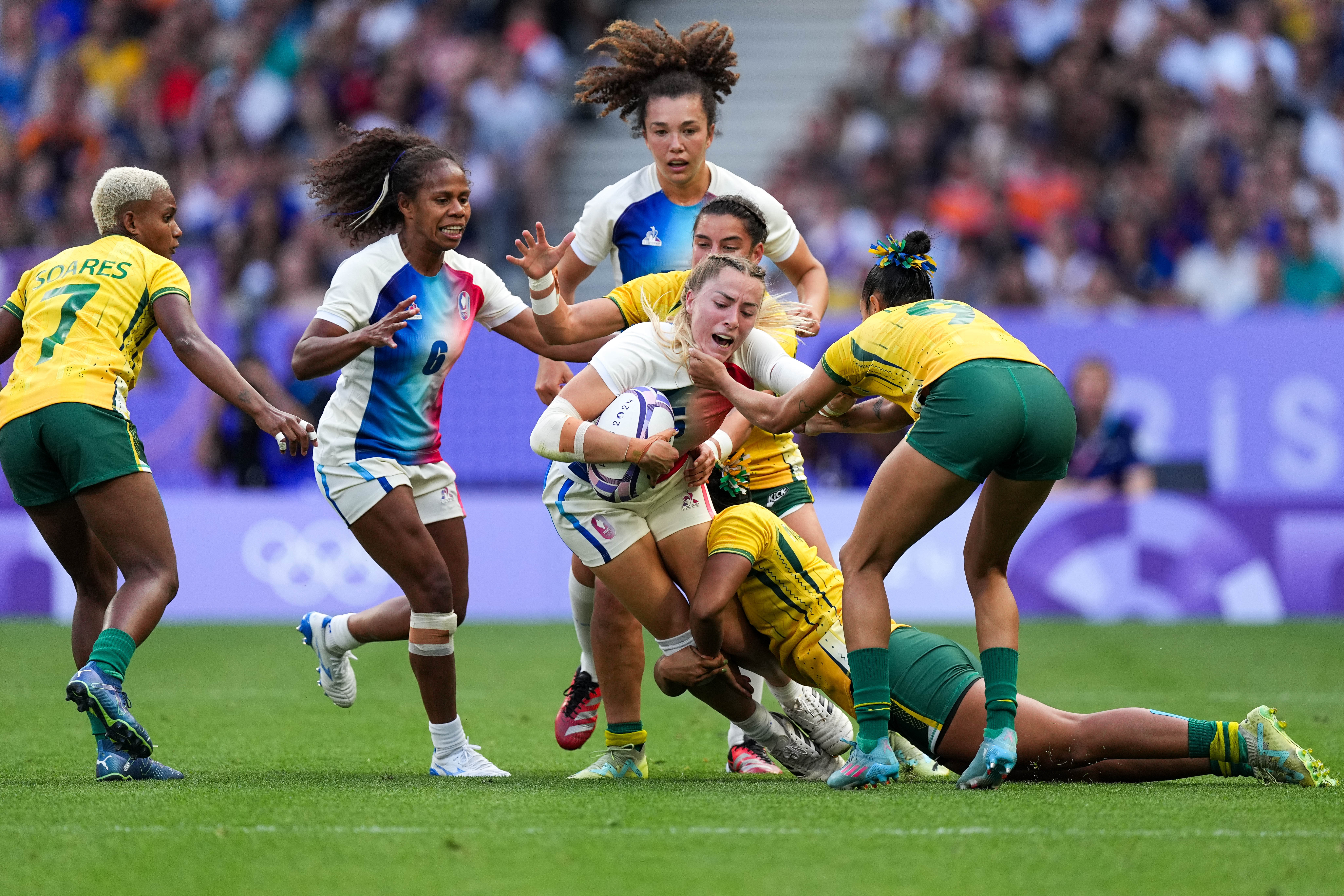 当日,在巴黎奥运会七人制橄榄球女子分组循环赛C组比赛中,法国队26比0战胜巴西队。