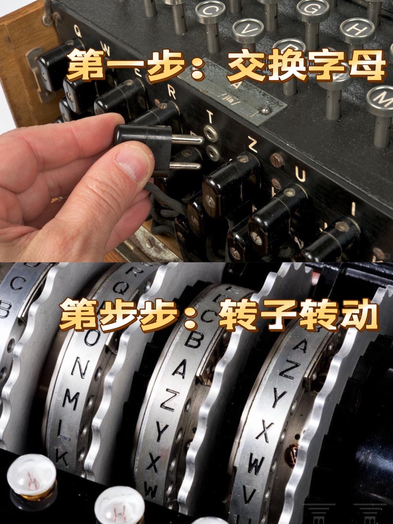 4、紫密加密原理:第一交换字母,第二转子不断改变交换的字母