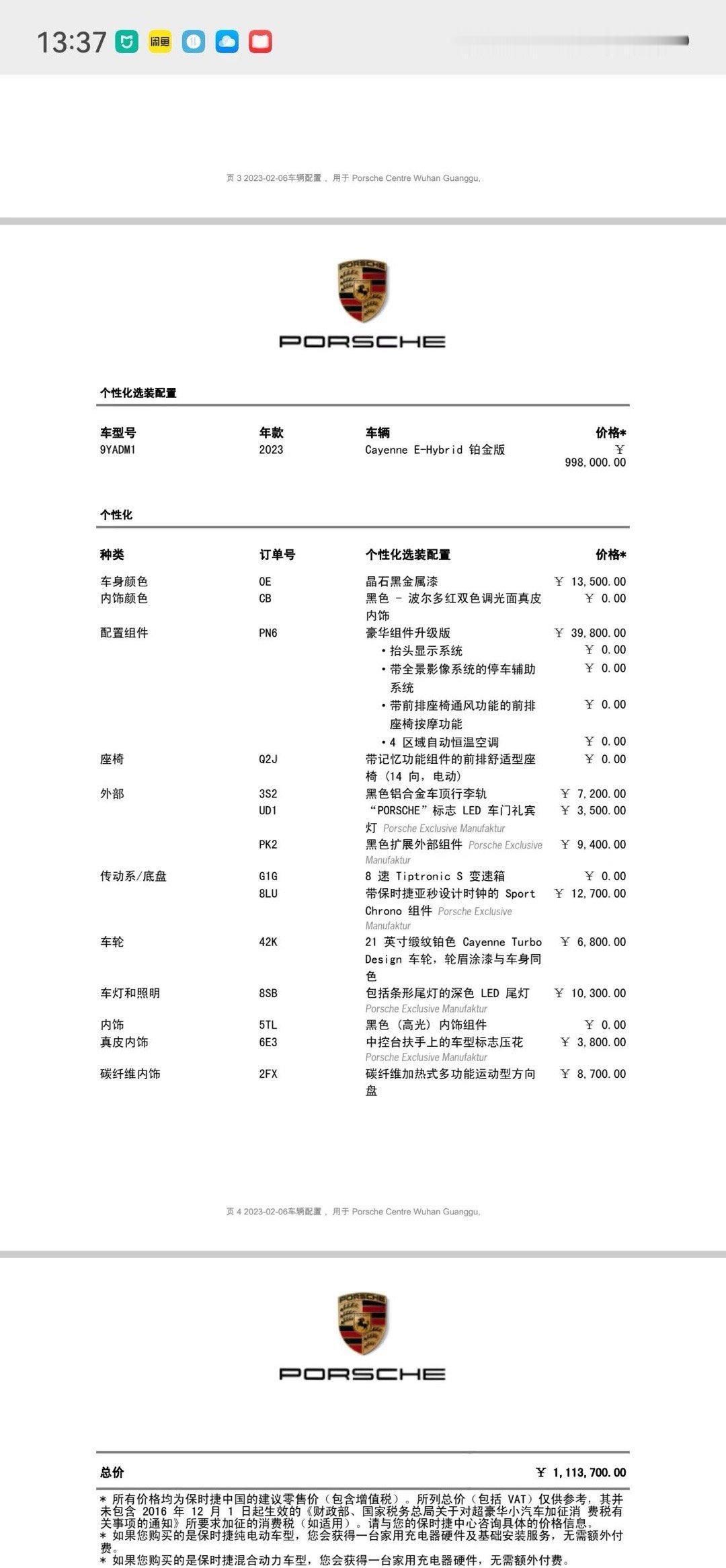 23年5月卡宴混动铂金版,