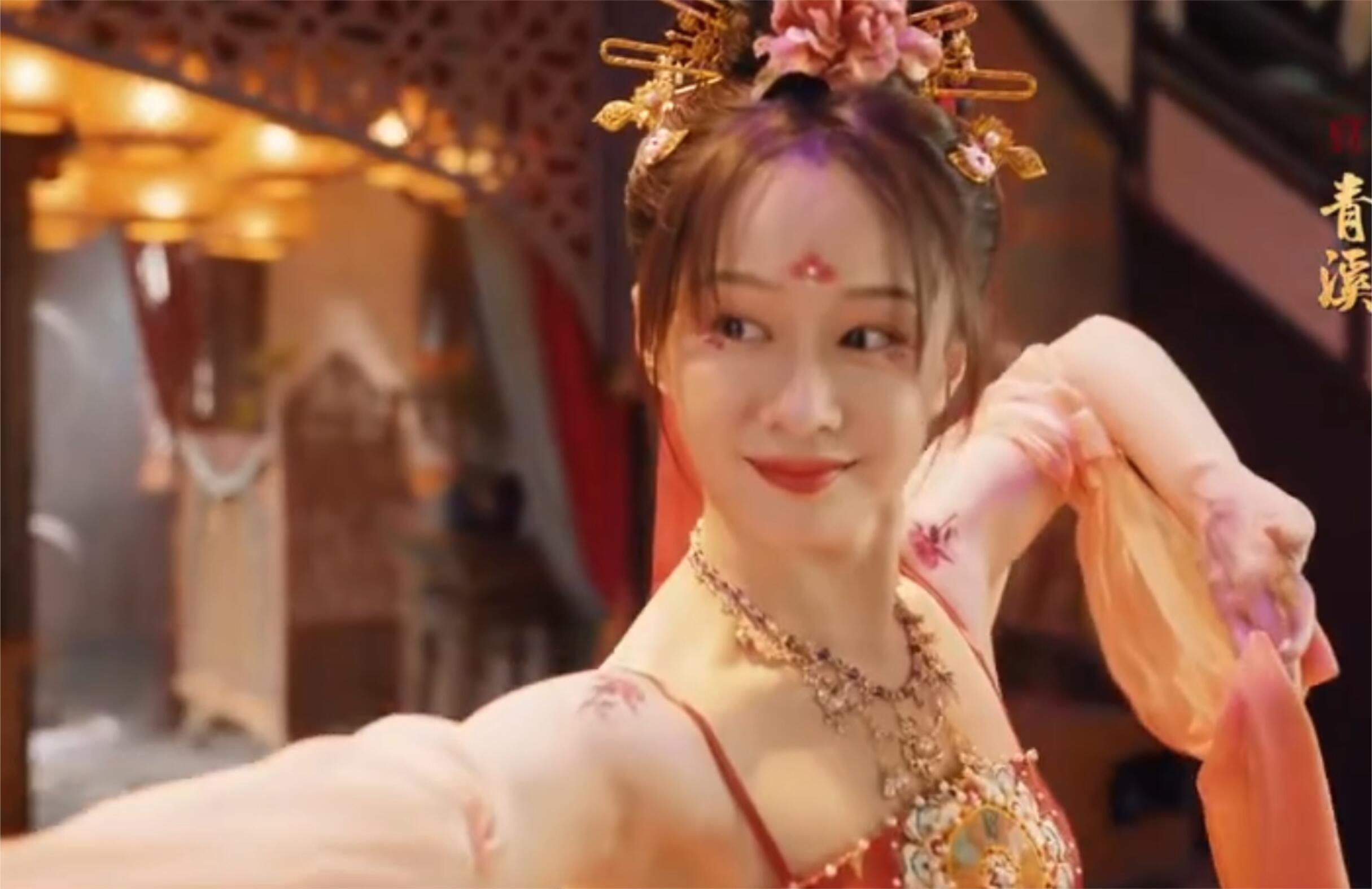 剧名:唐朝诡事录之西行 青溪绝婚以后再次站上舞台跳舞,衣服都不一样了。胳膊肩膀那里没有露出来了,虽然跳舞的时候大幅度还是会露出一部分小臂,但是现在穿的更像良人家的舞女了。 从前为了给丈夫治病,不得已去客栈跳舞,为了揽客肩上画了芍药,也因此被无赖盯上。绝婚之后她想开了,竟然又去跳舞了,从这里看她应该是真心喜欢跳舞的吧,只不过从前碍于丈夫的原因不能跳,后来丈夫生病更是为了钱不得已穿着暴露衣服跳。现在一切都变好了,她站在眼中只有欣赏而非凝视的人群中跳舞,终于能做回自己了。