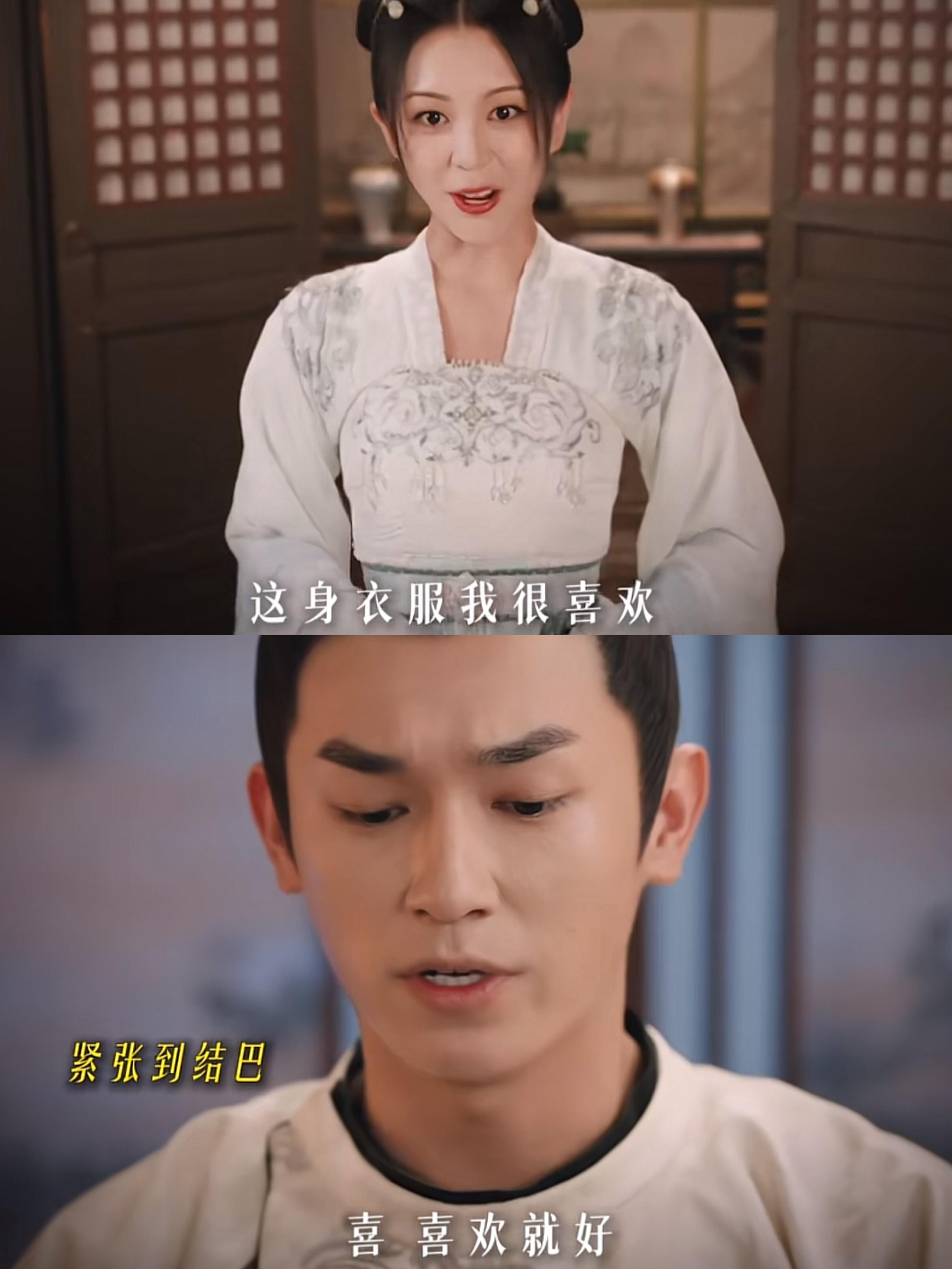 剧名:唐朝诡事录之西行 喜君穿上了卢凌风给他定做的新裙子,她非常的开心也很喜欢,卢凌风听完后回应,说话都变结巴了,很不好意思了…… 两人还假装要成亲,去布衣店做结婚穿的喜服,顺便调查案子…… 喜君看着卢凌风都害羞了,心里非常高兴……