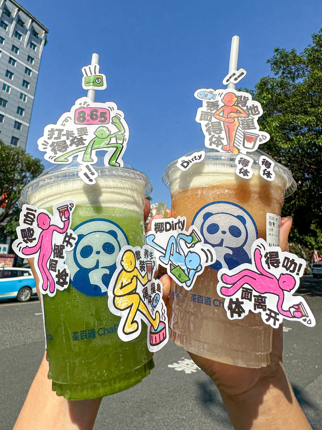 真的有被这杯新品好喝到!! 又奶又椰又清爽!夏天离不开了。。。 还有周边:得体工位立牌….得体打工人已就位! · 🍵轻芝抹茶椰青➕云绒奶冻➕芋圆 抹茶椰子脑袋快去喝😭😭巨巨巨清爽!抹茶混着茉莉茶底的清香!椰子水的加入格外清爽🧊顶上还有层芝士奶盖奶fufu的、太好喝了!! · 🥥轻芝红茶椰青➕西米➕云绒奶冻➕椰果 椰子水+红茶+奶盖!椰子味无敌浓!!我还另外加了云绒奶冻、西米和椰果!边喝边嚼口感吼丰富😋😋推荐不另外加糖刚刚好~ · 8.2-8.11,连续10天‼️‼️椰dirty✔️9.9喝‼️ 快